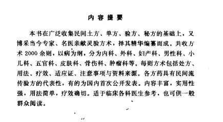 收录 **5000+** 临床有效验方、秘方、偏方,含内服、外敷、熏洗、针灸、按摩、拔罐、艾灸等。 -