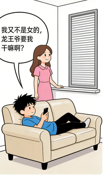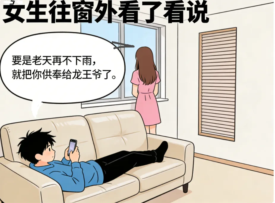 趣味漫画:一女子对她的老公说:要是老天再不下雨,就把你供奉给龙王爷了.