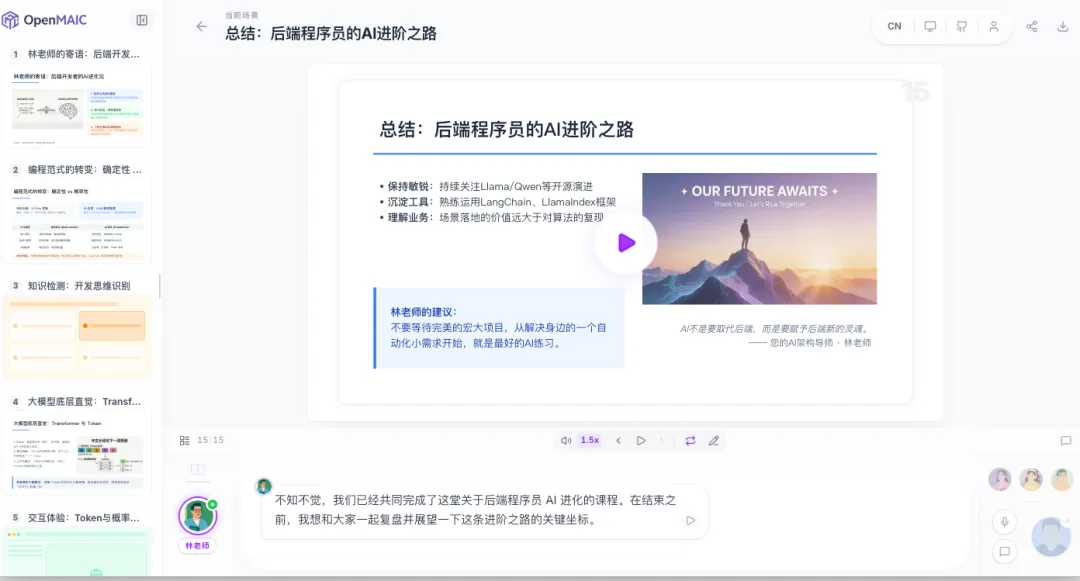 设定好目标后,不用自己找资料、拆步骤,让OpenMAIC当你的“专属老师”,把复杂内容拆成小白能听懂的简单步骤,还会提醒新手容易踩的坑。
