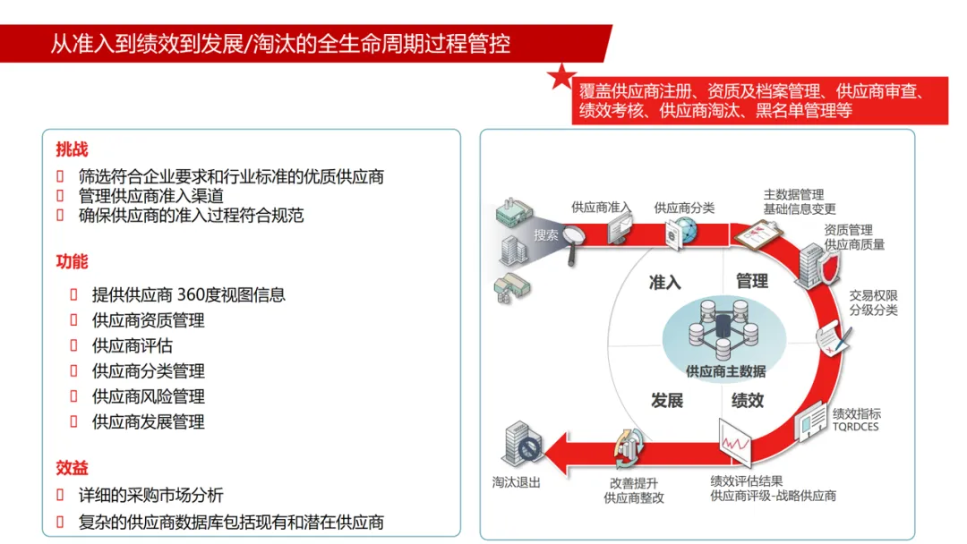 管理要求:规范业务流程与规则,建立高效数字化运营机制;将风险管理融入各环节,实现采购过程与供应商风险监控;优化标准化流程,提升管控与执行效率。