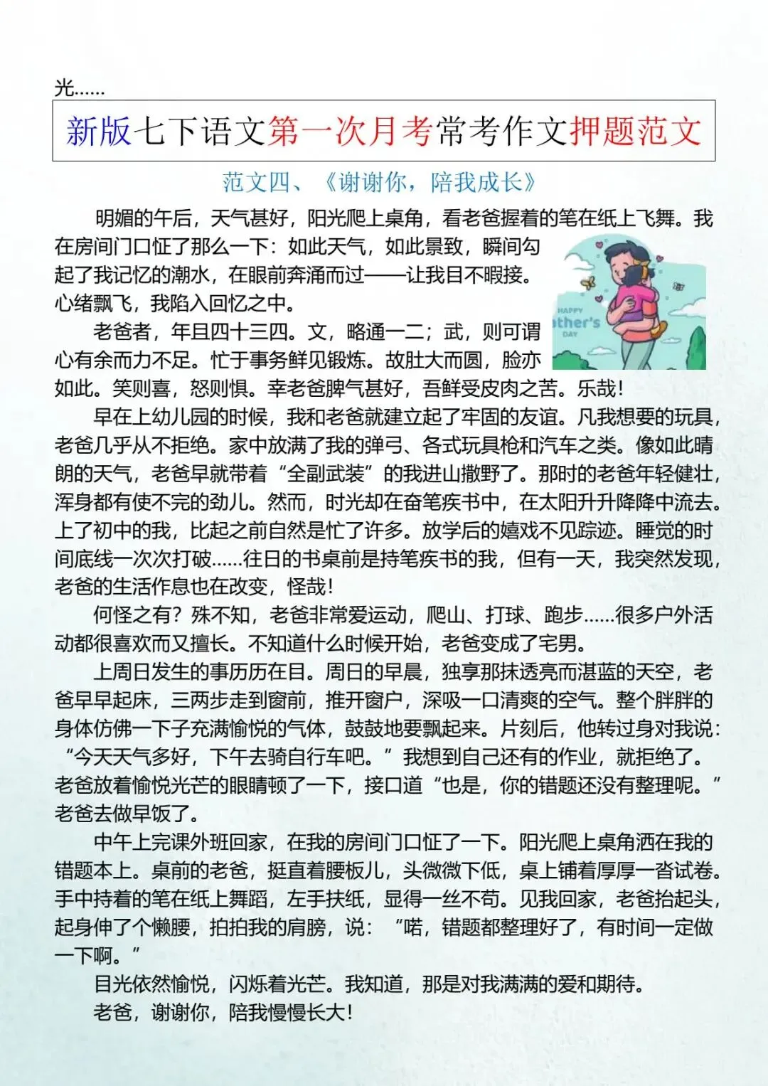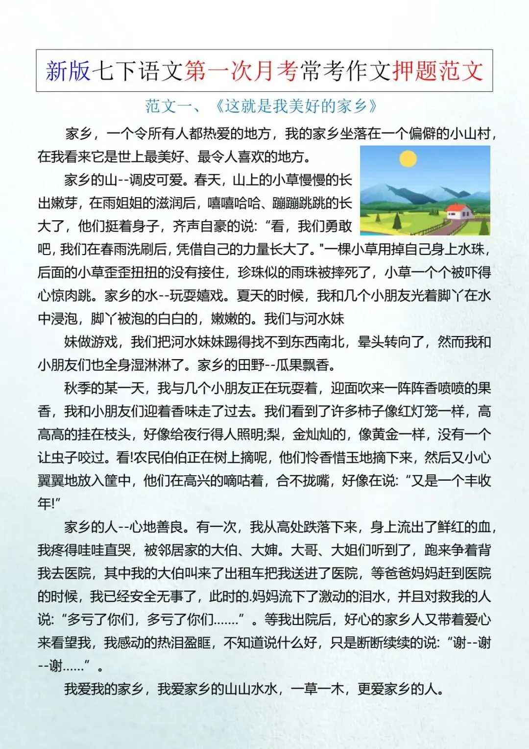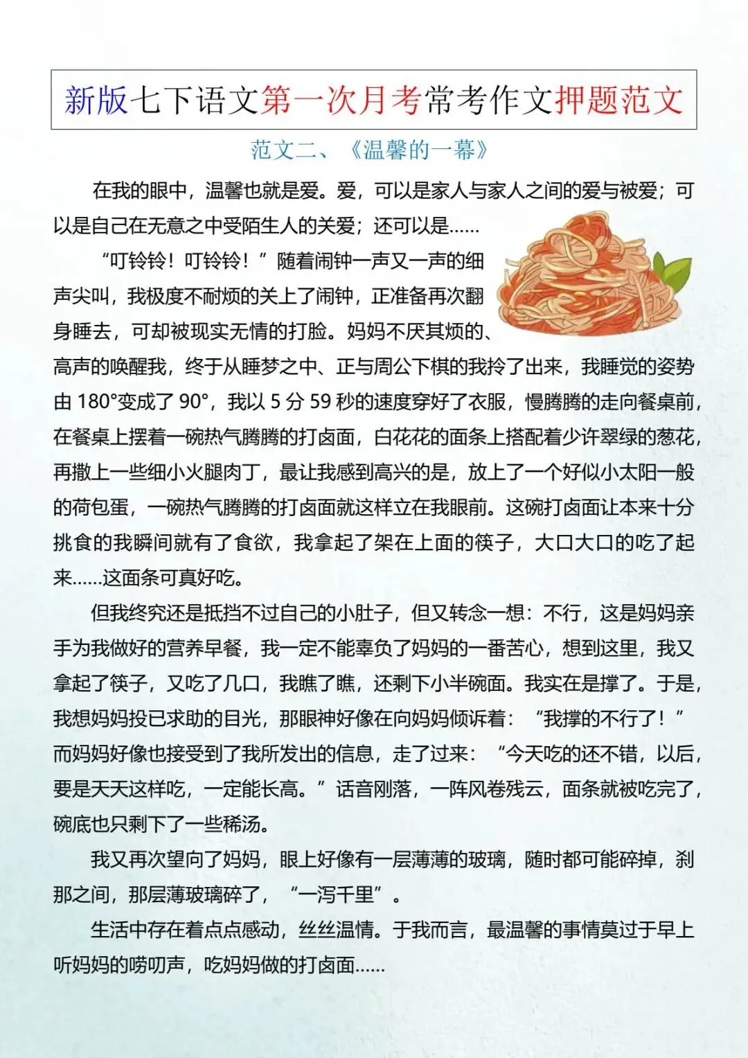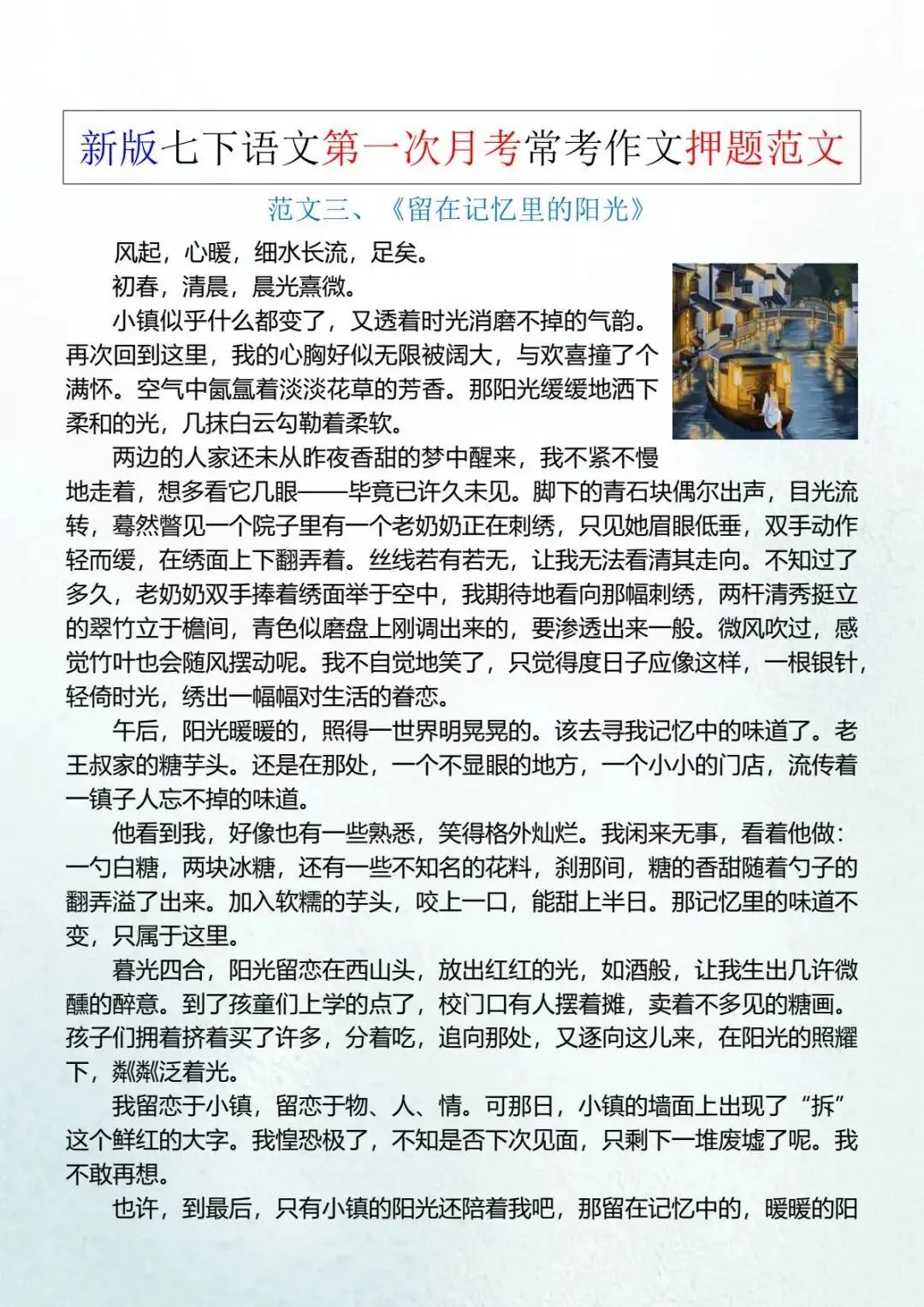 七年级下册语文《常考作文押题范文》 电子版可打印