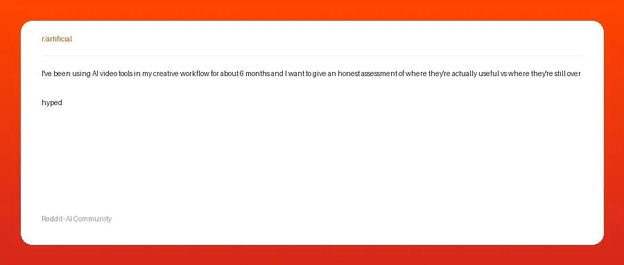 一个自由职业内容创作者,被客户问烦了,干脆把市面上那些AI视频工具塞进自己工作流里,用了整整半年。昨天他在Reddit上甩出一份评估单,讲真,比那些天花乱坠的宣传实在多了。