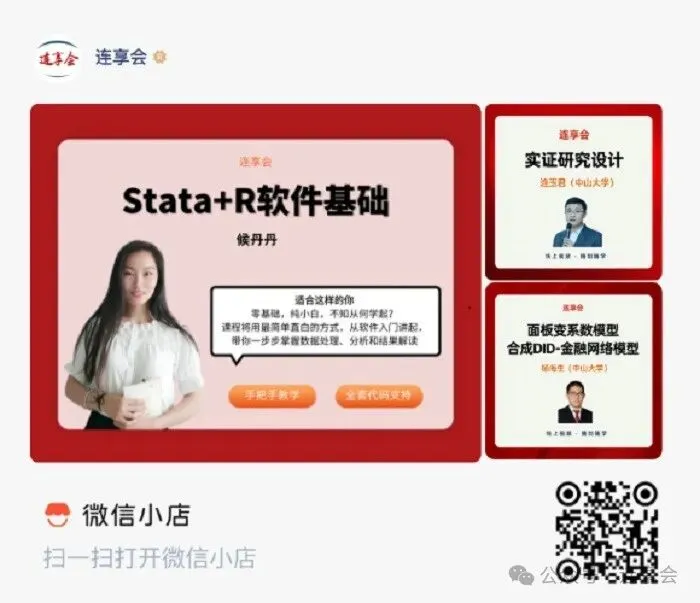 Note:扫一扫进入“连享会微信小店”,你想学的课程在这里······