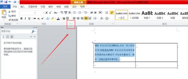4. 然后再来调整Word字符间距。也是将所有文字框选住,点击字体那一栏右下角代表“字体对话框”的符号。