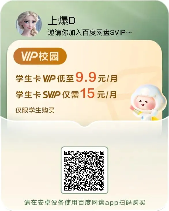 百度网盘超实用功能助你学习事半功倍!每月一杯奶茶钱享会员特权!扫码立即购买