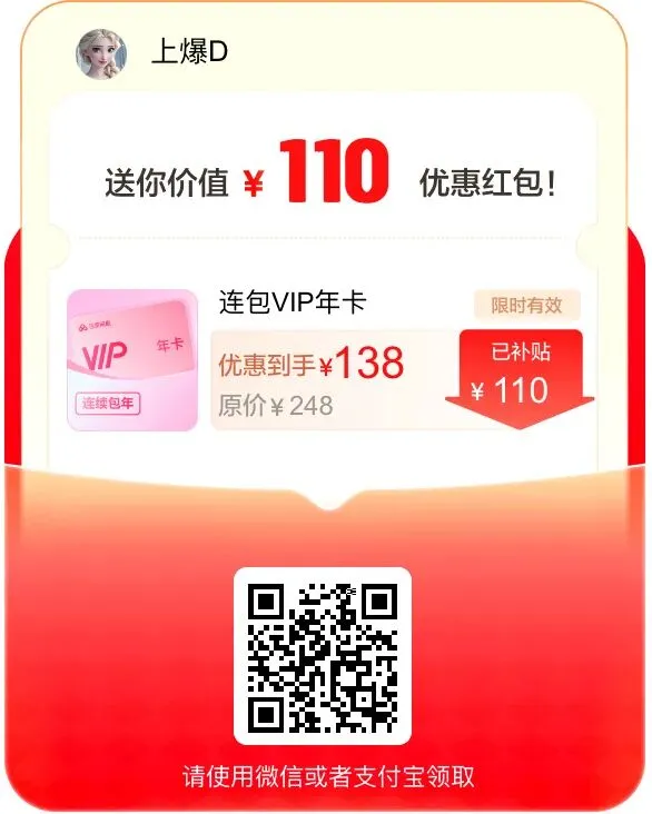 原价298的SVIP年卡,新用户只要【188】!月卡只要【18】!