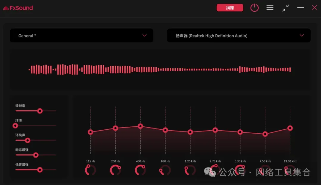 ,并回复:进群如果您对计算机或笔记本电脑的音质不满意,那么也许是时候考虑使用音频增强器了。 无论您是看电影、浏览 YouTube 还是听音乐、打游戏,音频增强器都可以提升您的聆听体验。 FxSound是一个方便的工具,它包含多个均衡器来帮助提高音量和质量,可以有效的提升3倍音质!
