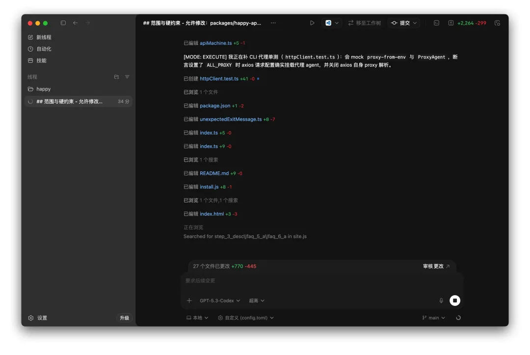 Codex App本身不支持设置网络,但是,聪明的GitHub大佬发现,一样的搞法,对App也能生效