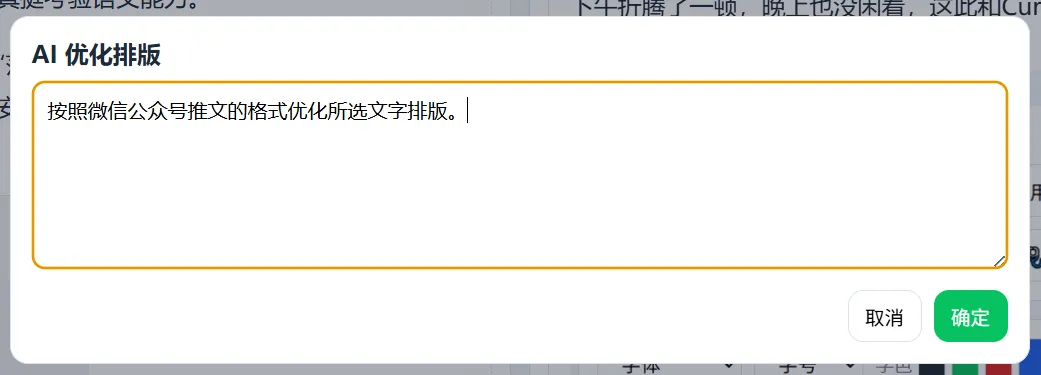 还有一个AI优化排版,内置了一句命令,点击一下,便对所选段落进行区域排版。还是挺实用的。