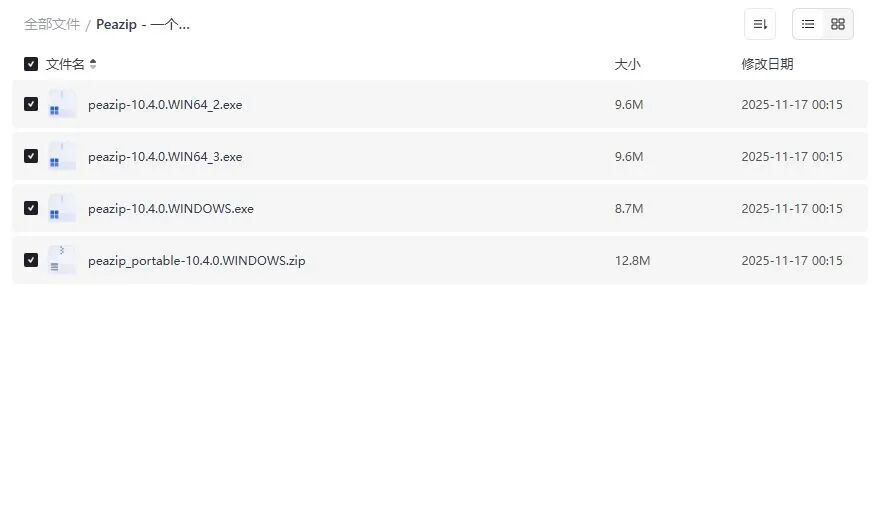 • peazip_portable-10.4.0.WINDOWS.zip——绿色免安装版,U 盘即插即用,走到哪压到哪,出差党福音!