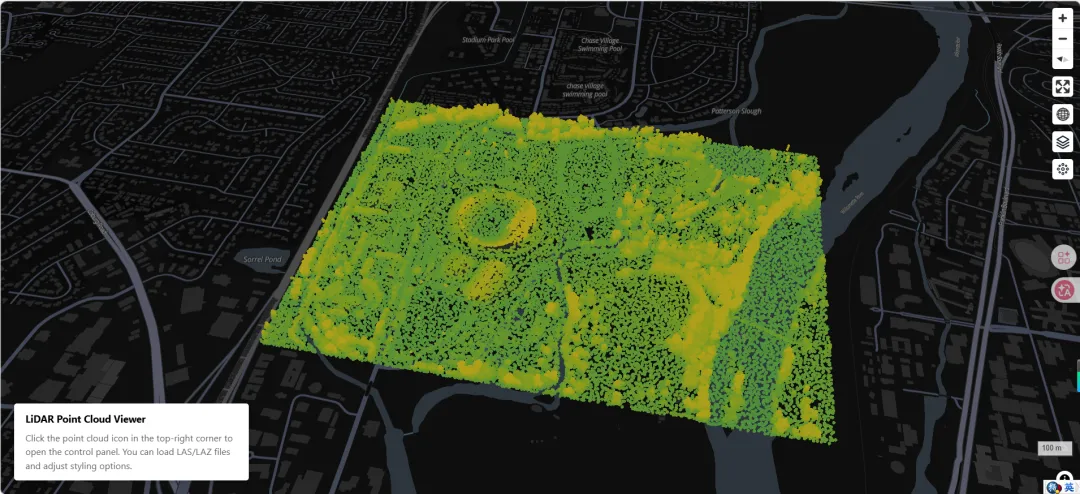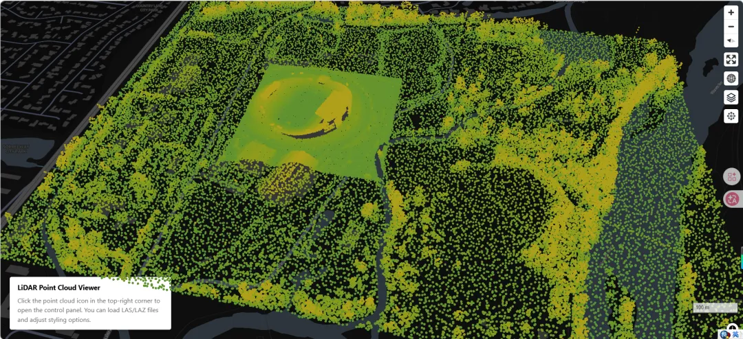 const map = new maplibregl.Map({ /*地图选项*/ });map.on("load", () => {const lidarControl = new LidarControl({title: "LiDAR Viewer",pointSize: 2,colorScheme: "elevation"});map.addControl(lidarControl, "top-right");lidarControl.loadPointCloud("https://example.com/pointcloud.copc.laz");});