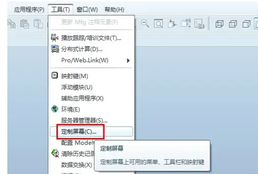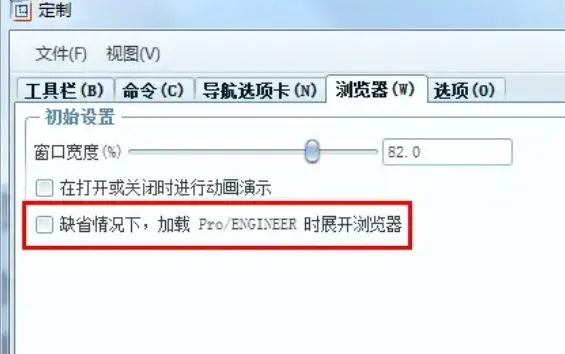 1。打开preo软件,点击界面上【工具】-【定制屏幕】-【浏览器】,取消勾选“缺省情况下,加载Proe/ENGINEER时展开浏览器”。注意将config.win 保存到启动目录下!