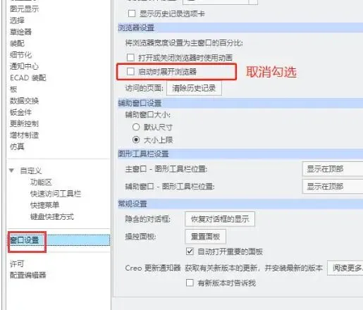 这样默认启动ProE5.0就不会再有显示脚本错误的烦恼了,因为内嵌的浏览器不会自动展开