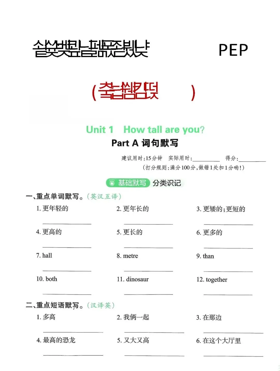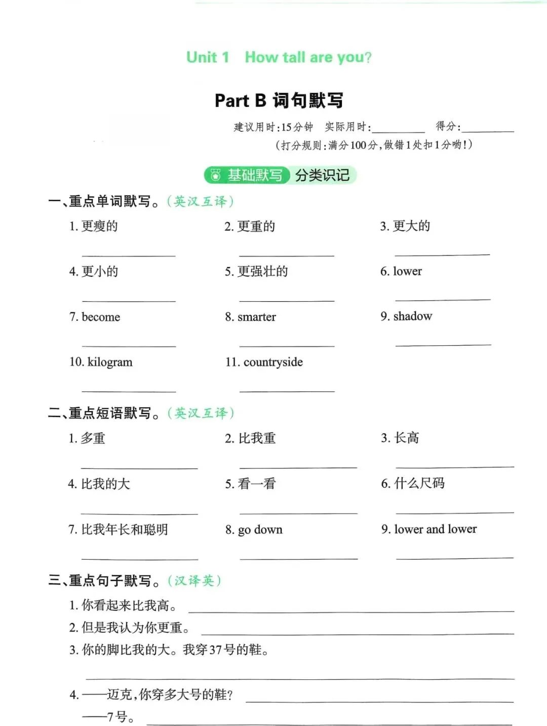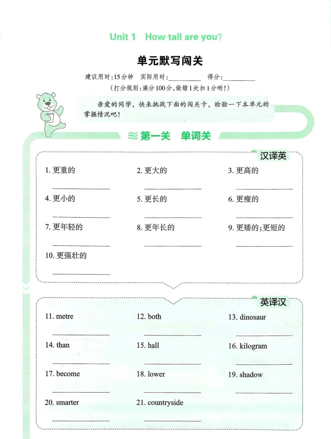 六年级英语下册单元知识默写单,免费下载