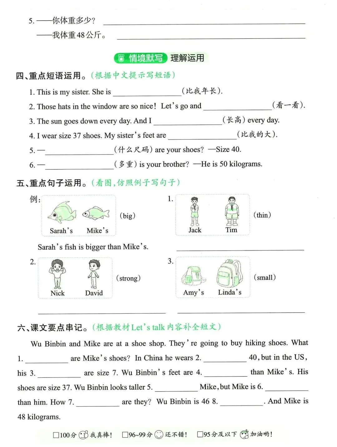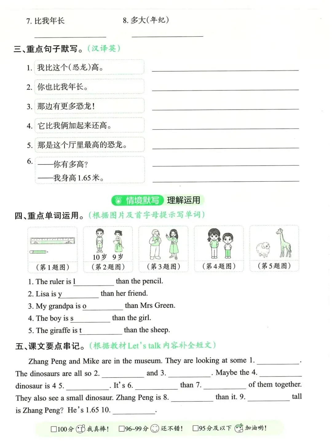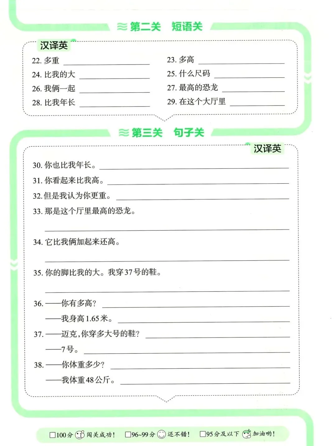 六年级英语下册单元知识默写单,免费下载
