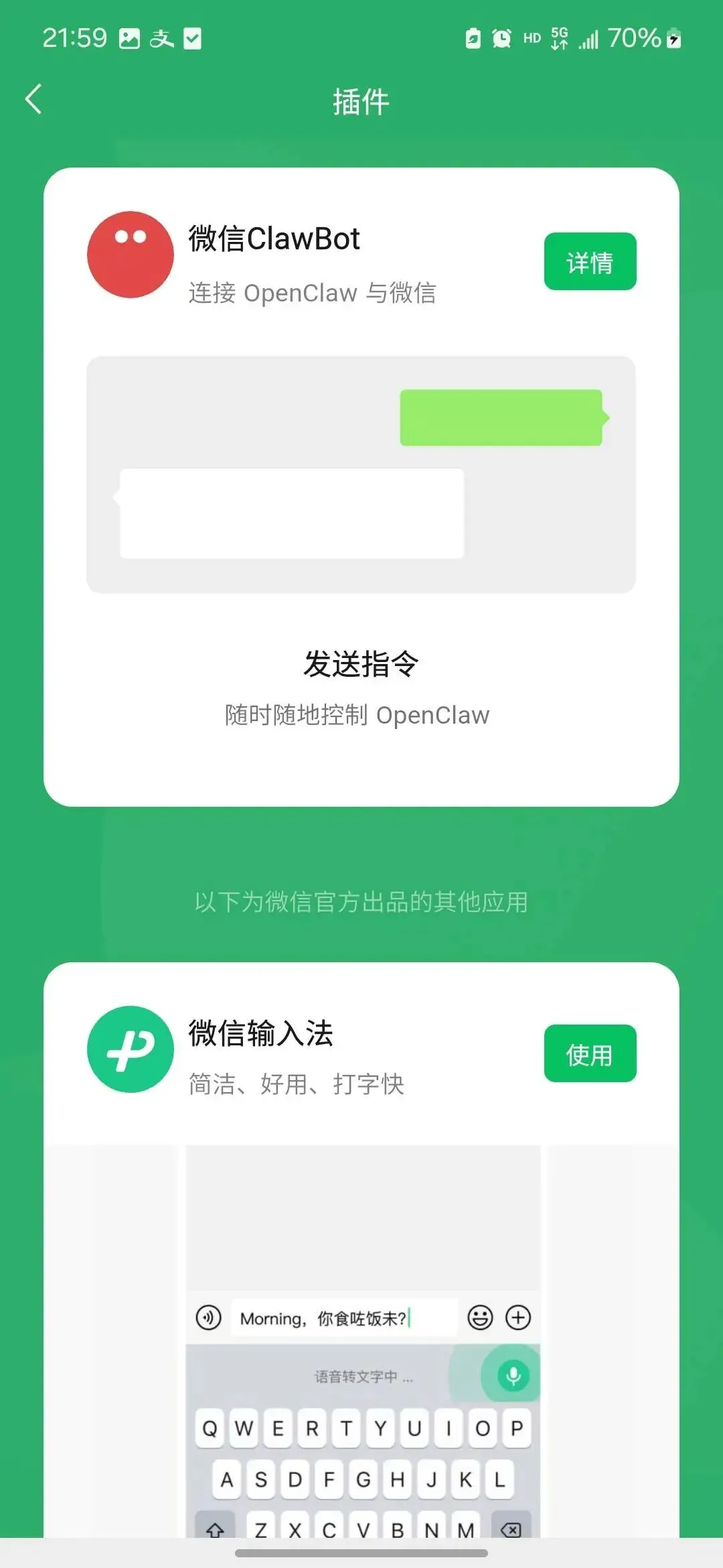 2026 年 3 月 22 日,微信灰度推了一波人,2026 年 3 月 23 日,插件 ClawBot 出现了