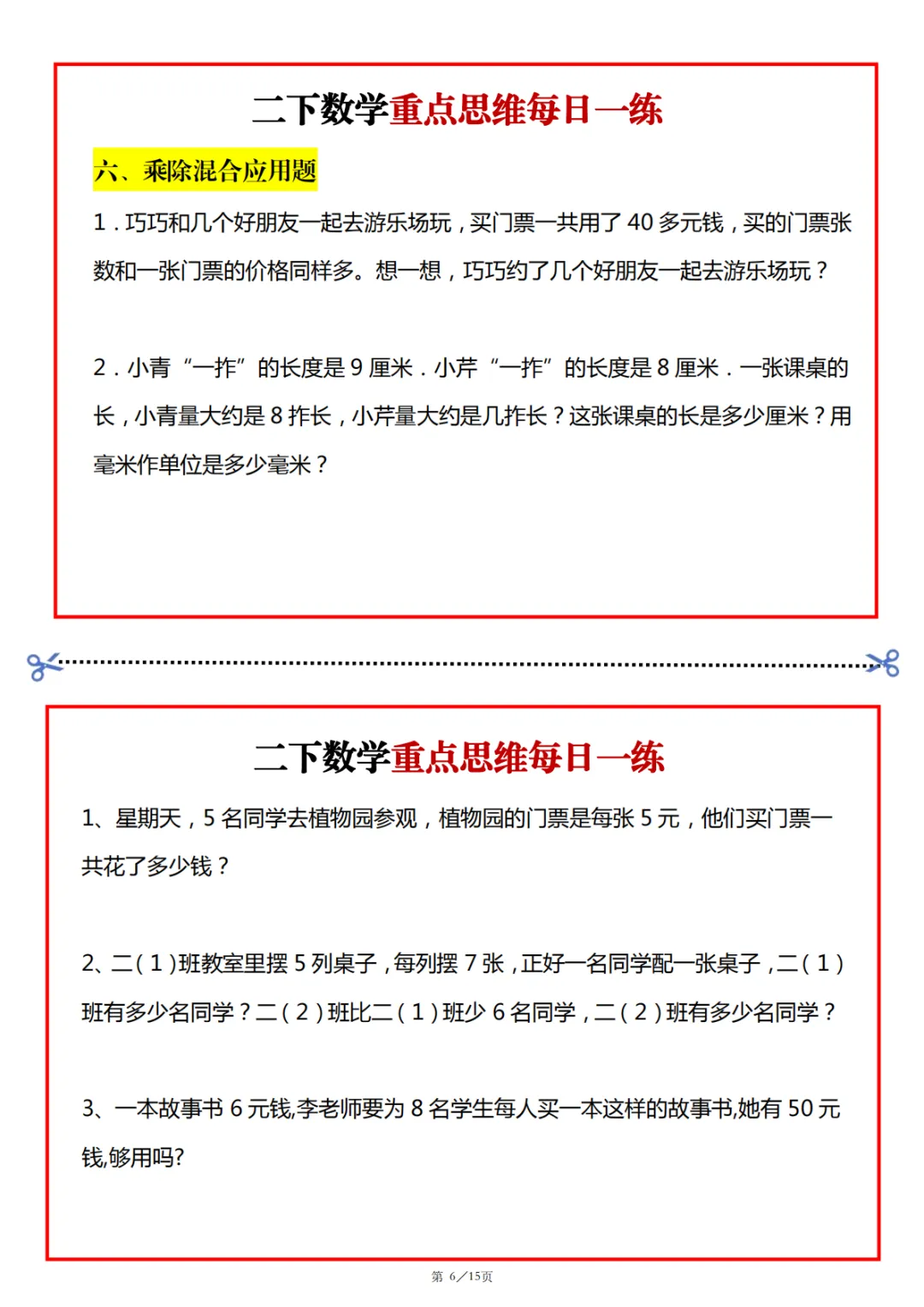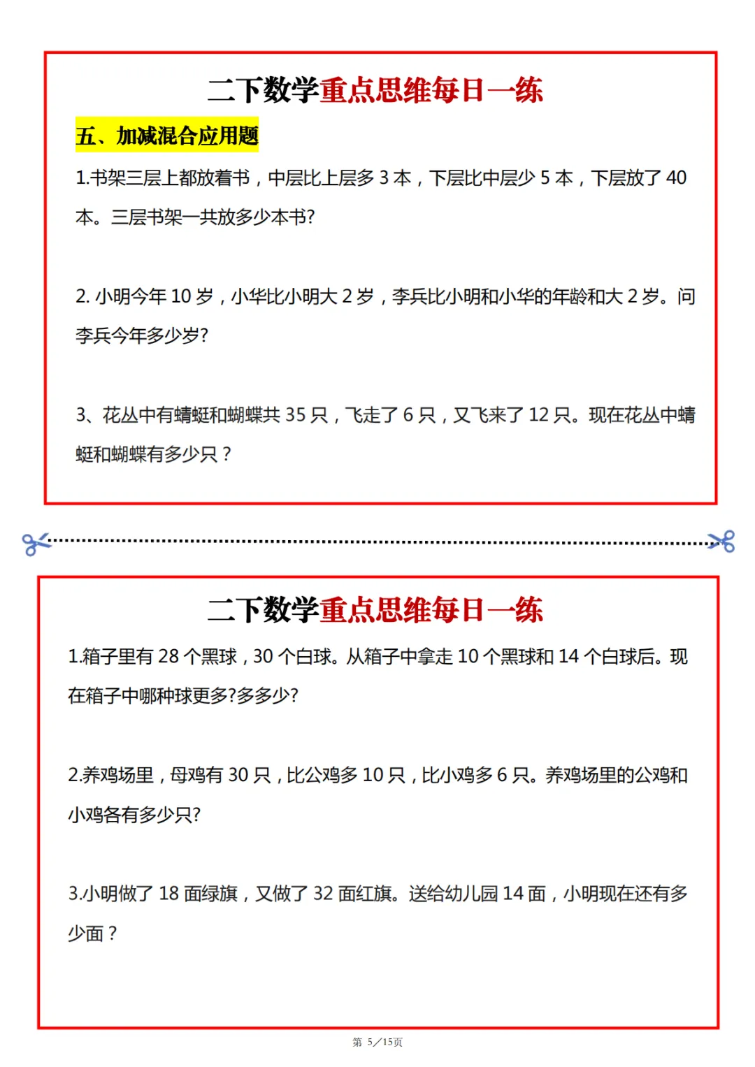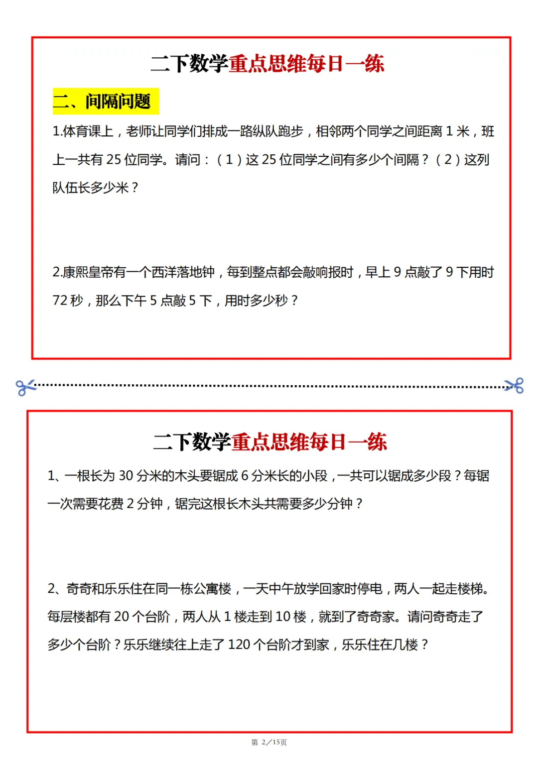 2026春二年级下册数学寒假思维题(可下载)