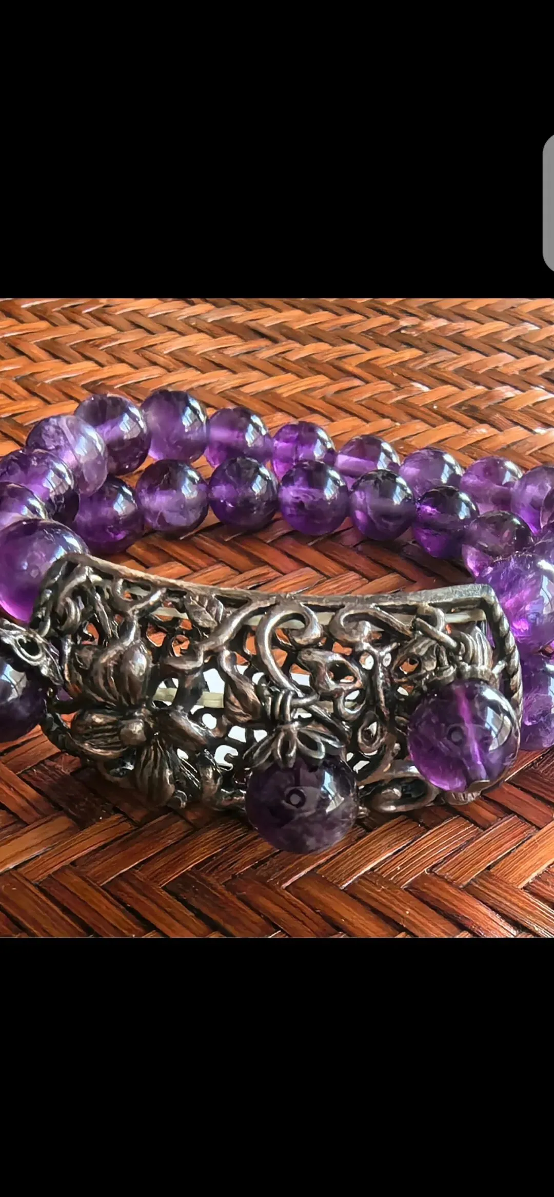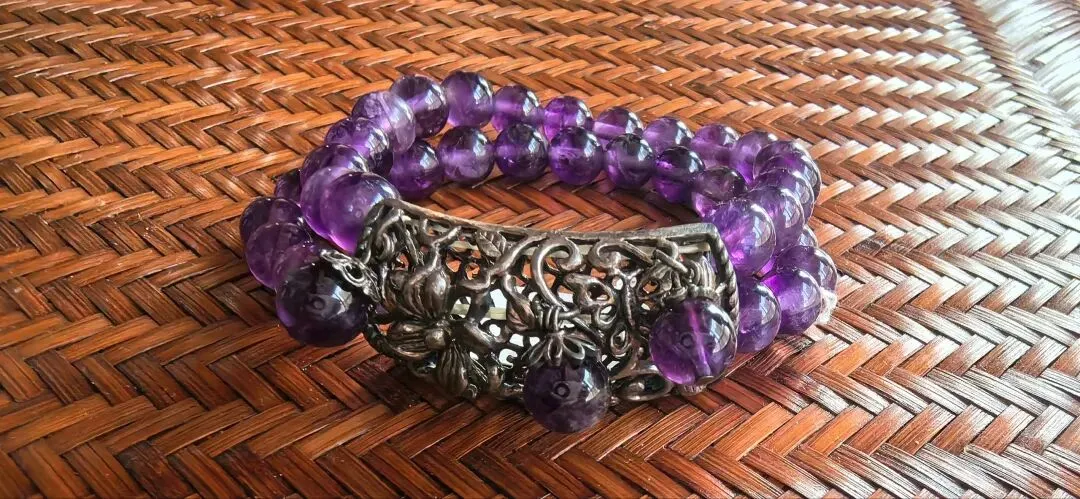 紫水晶手串,招财纳福,银搭配🦋蝴蝶牡丹花开。