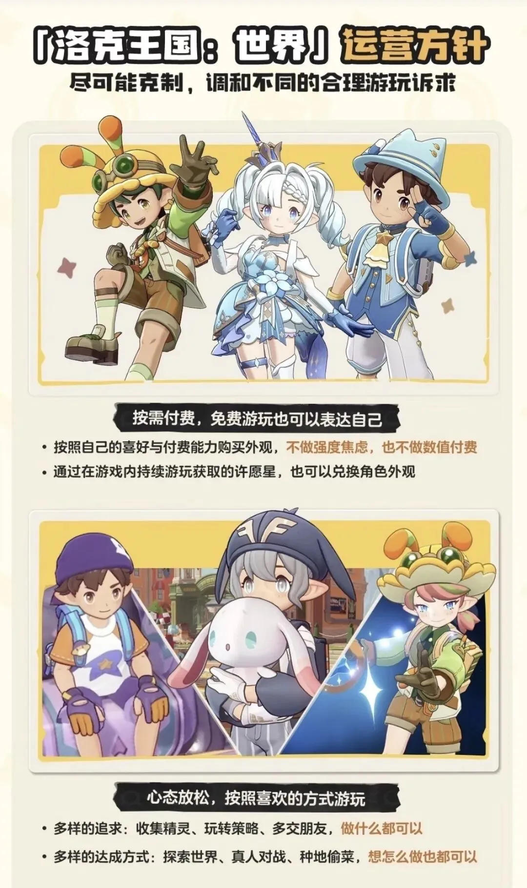 按需付费,无强度焦虑:外观可自由购买,或用游玩获取的许愿星兑换,不逼氪、不搞数值付费,主打轻松游玩。