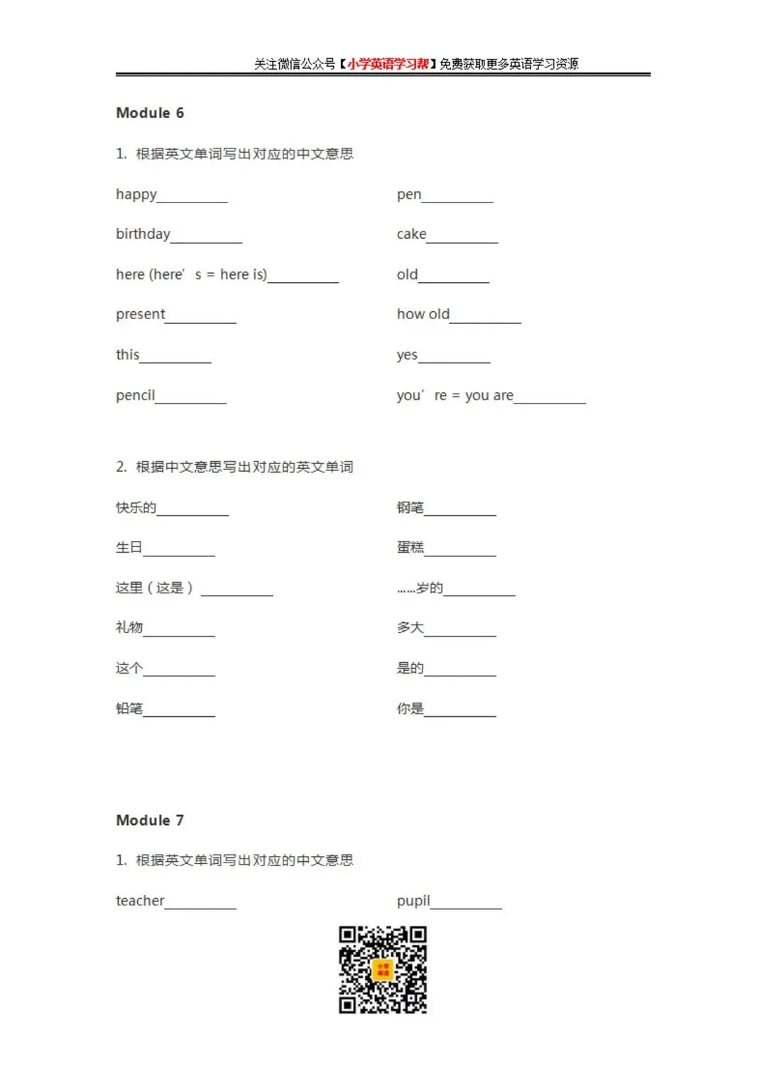 ③:在公众号对话框回复:小学资料