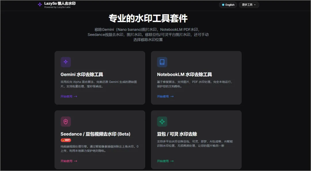 推荐一个免费好用的去水印工具 LazySo 懒人去水印,纯前端处理不用上传,隐私更安全。支持去除 Gemini、NotebookLM、豆包、可灵等 AI 生成图片及视频水印,可手动涂抹修复,批量处理速度快,画质无损,无需注册直接使用,实用又方便。