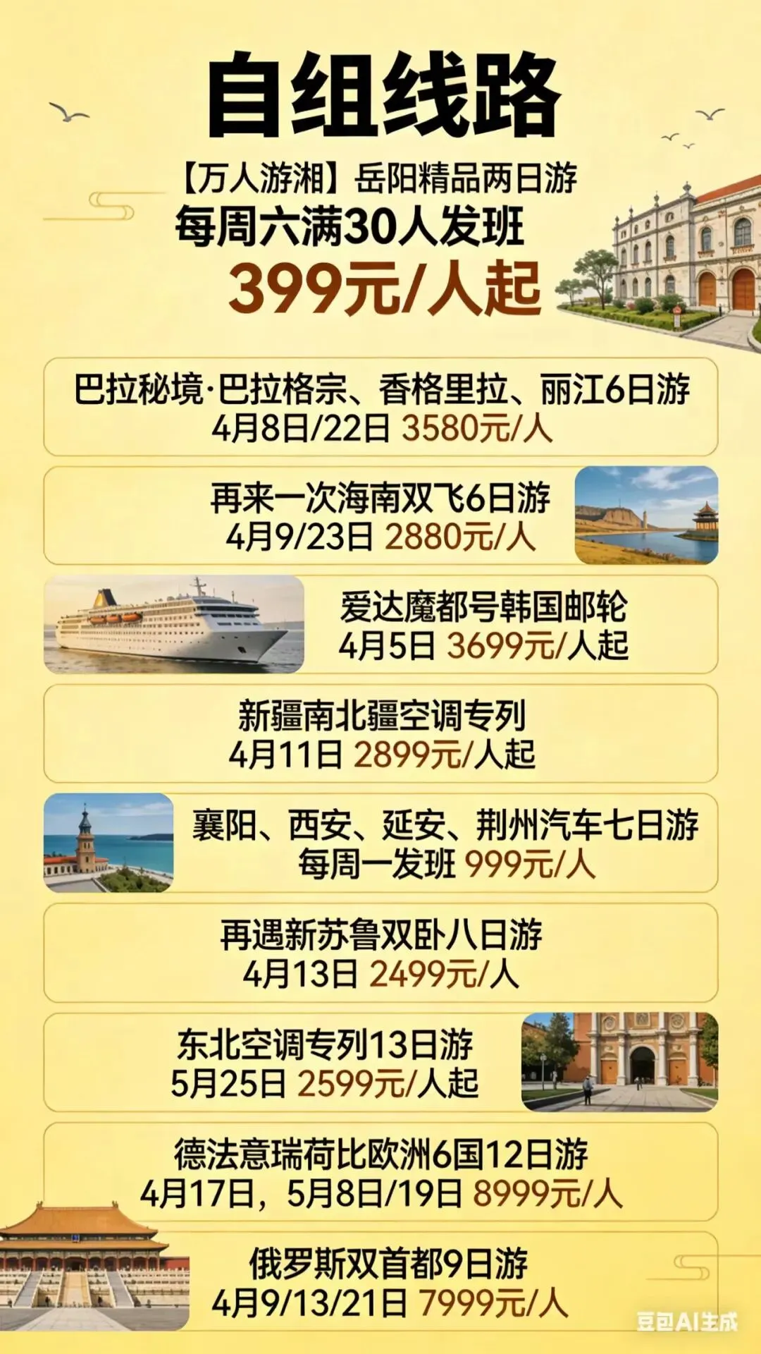 4月11日/25日发班 3380元/人起