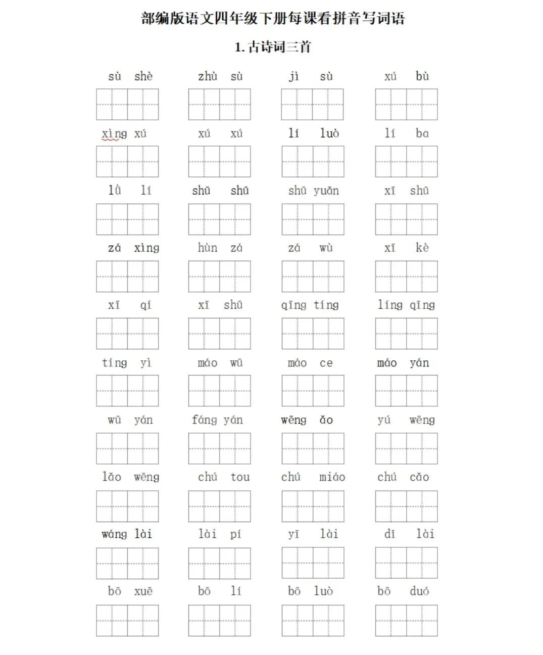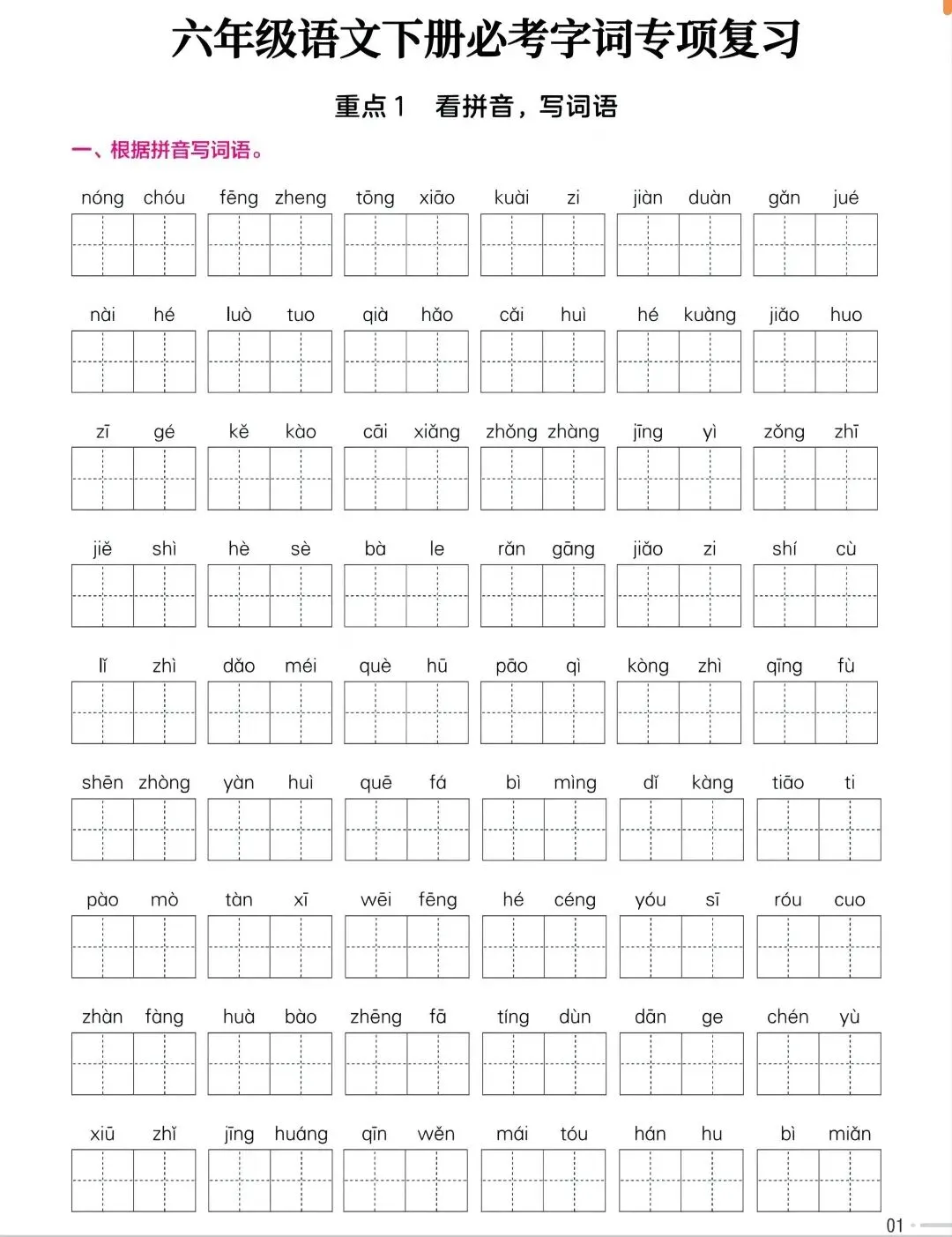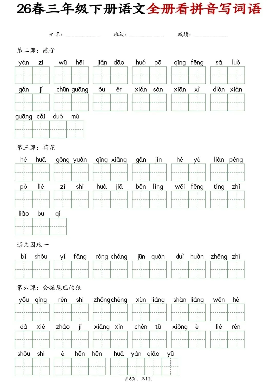 新版看拼音写词语1~6年级(可打印)