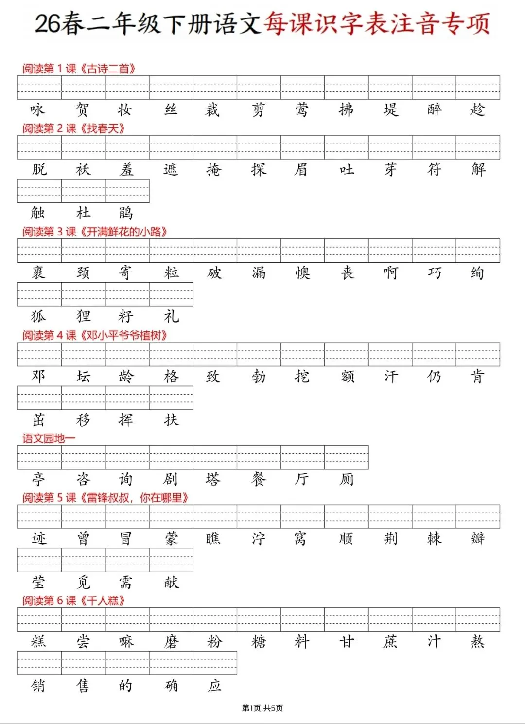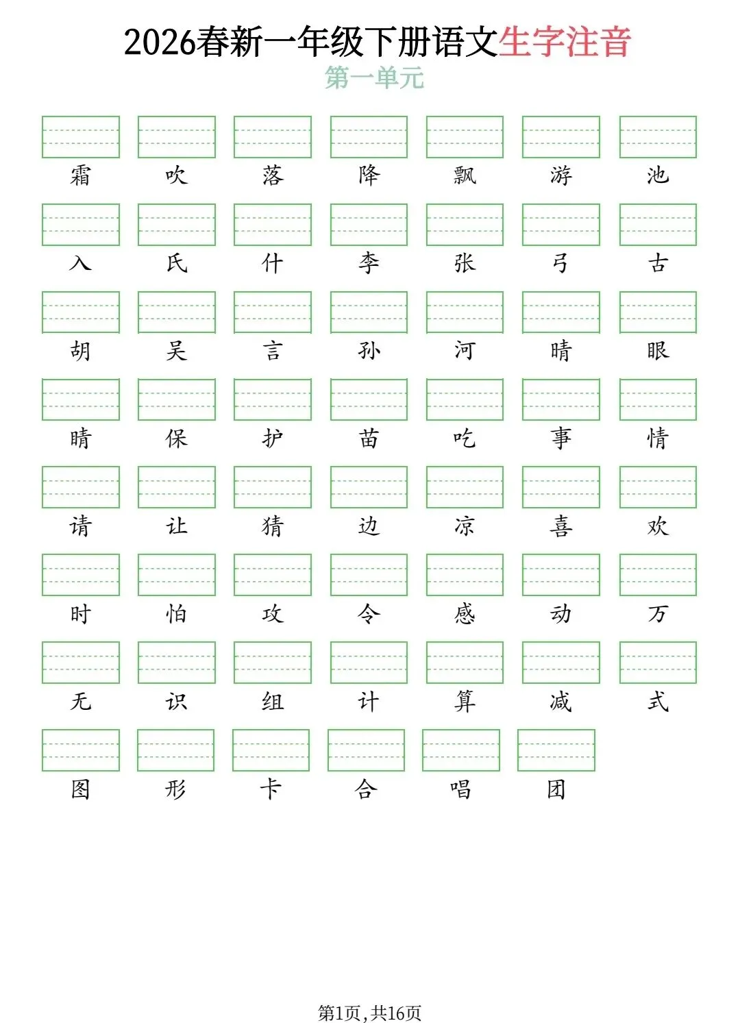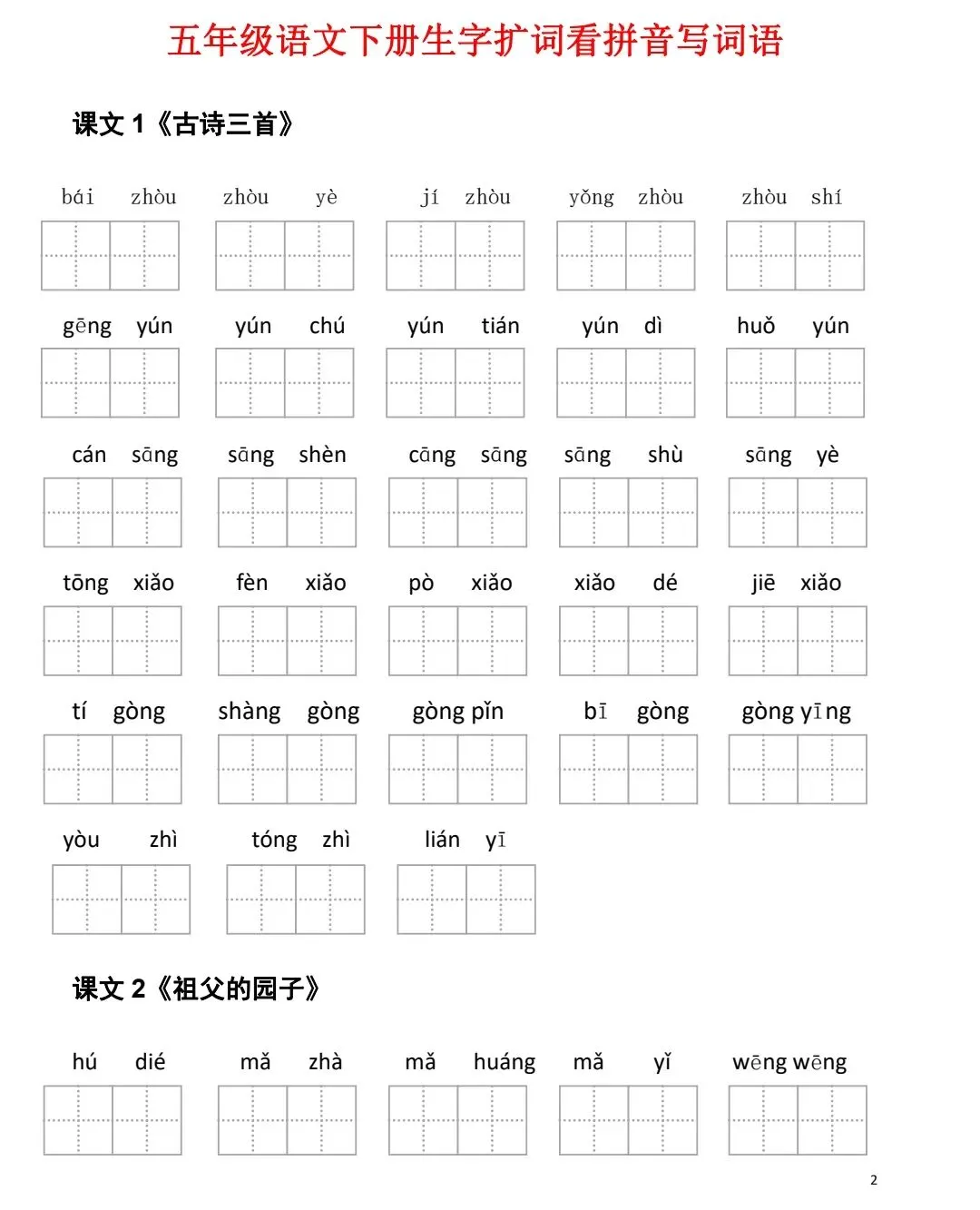 新版看拼音写词语1~6年级(可打印)