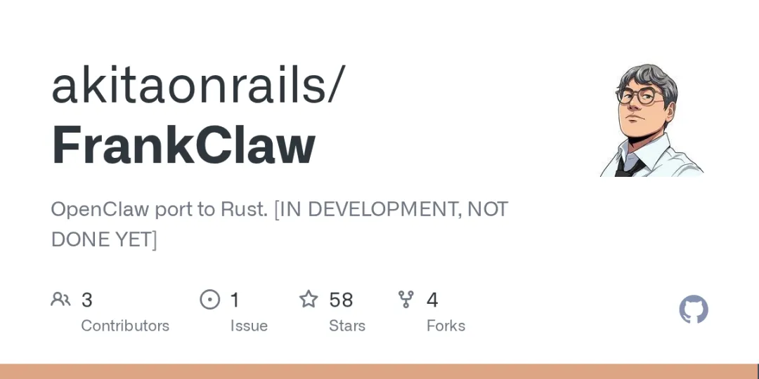 地址:https://github.com/akitaonrails/FrankClaw