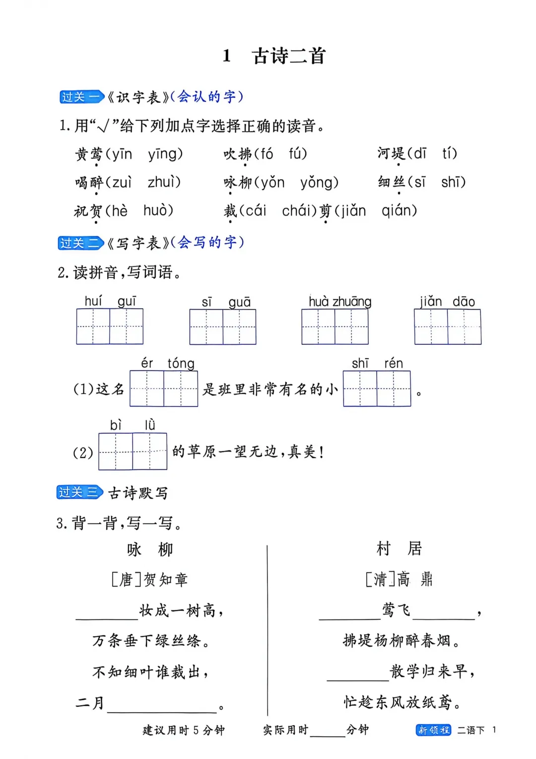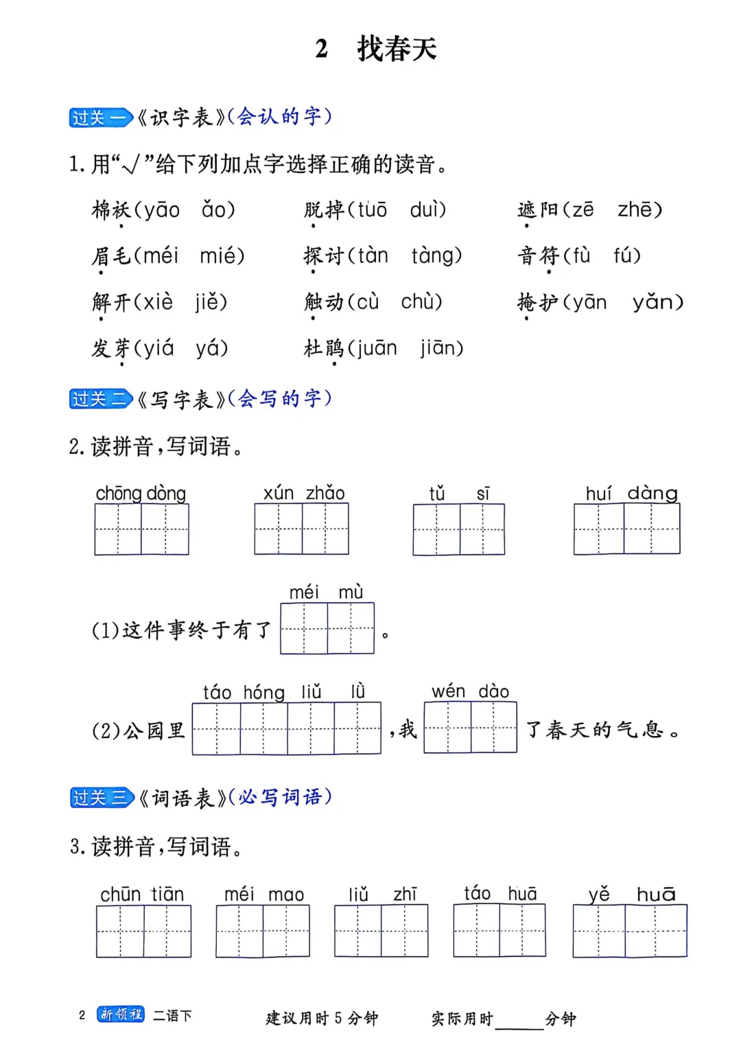 二年级下册语文字词学习册(电子版可打印)