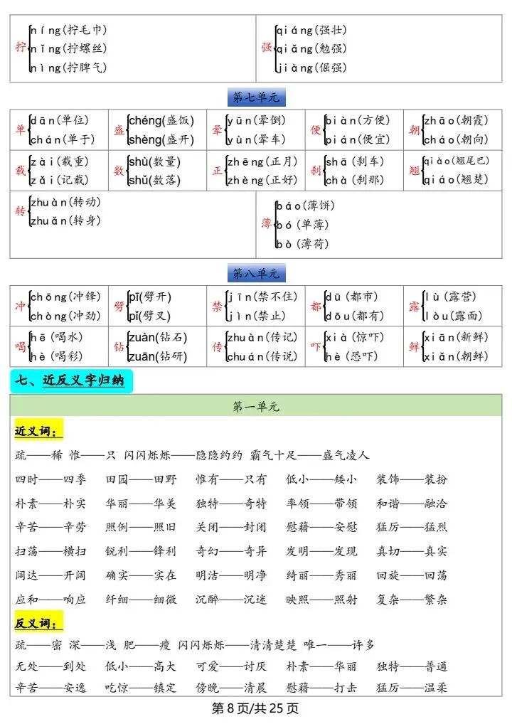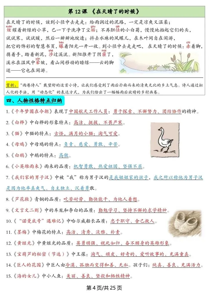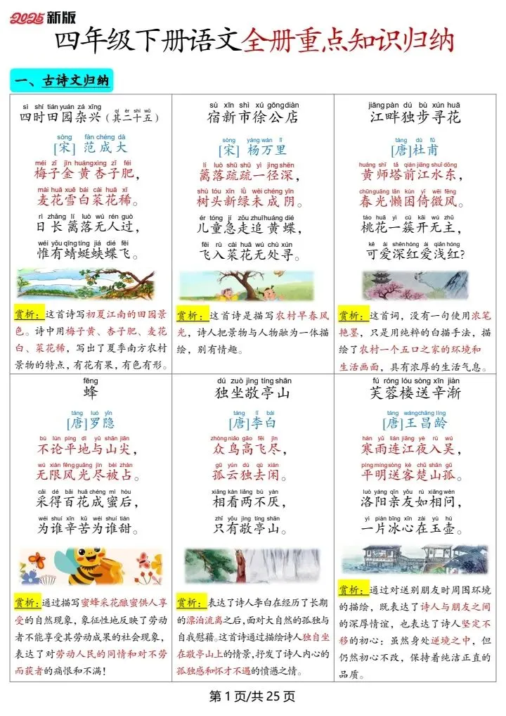 今日分享:四年级下册语文全册重点知识归纳(完整电子版可打印)!文章配套电子版可直接打印,家长无需额外整理,根据孩子薄弱点灵活安排练习,循序渐进、扎实提分✨