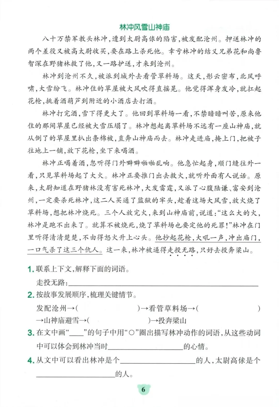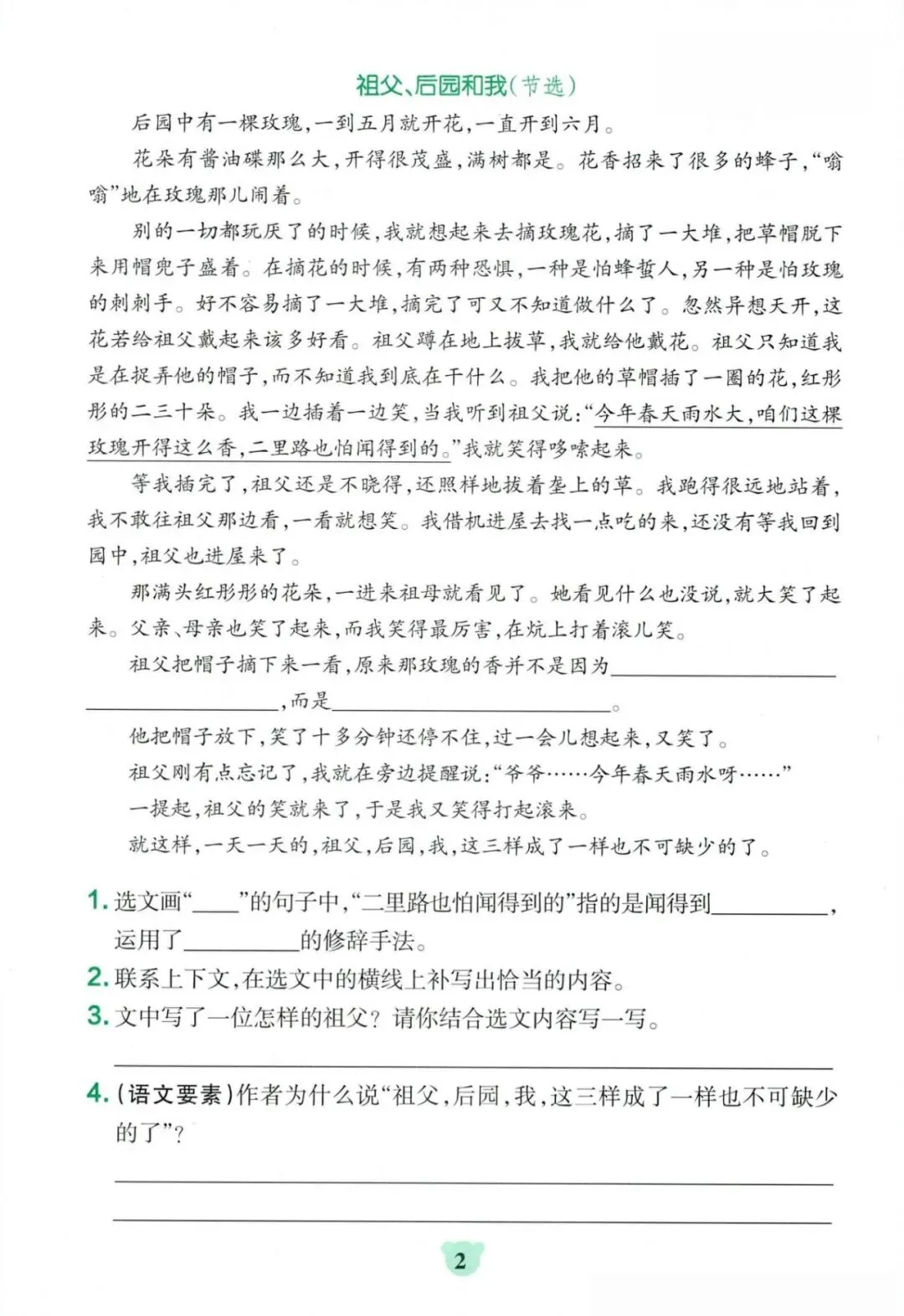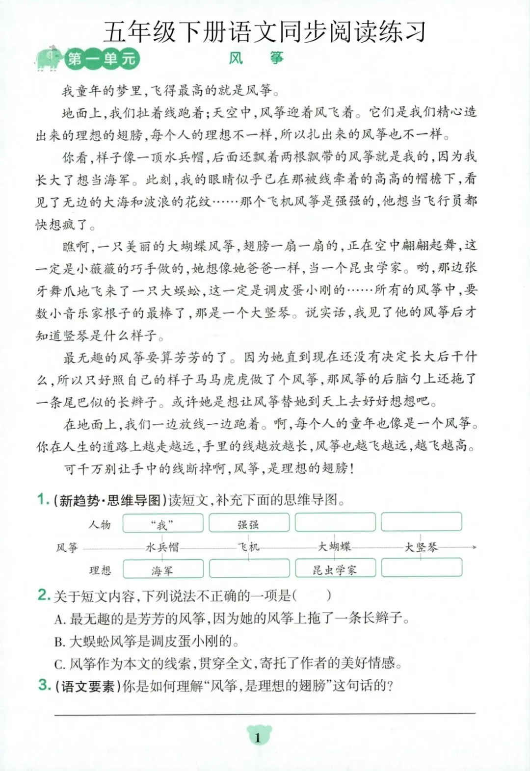 26春五年级(下)语文 同步阅读练习可免费下载打印