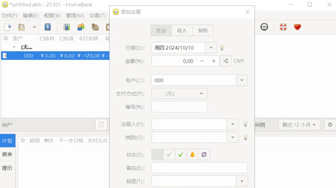 第三步:开始记账创建账户,录入或导入交易记录,剩下的就交给HomeBank吧。