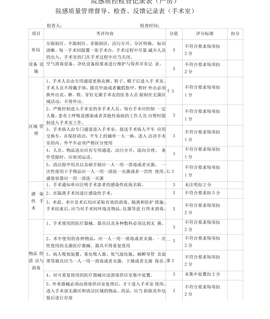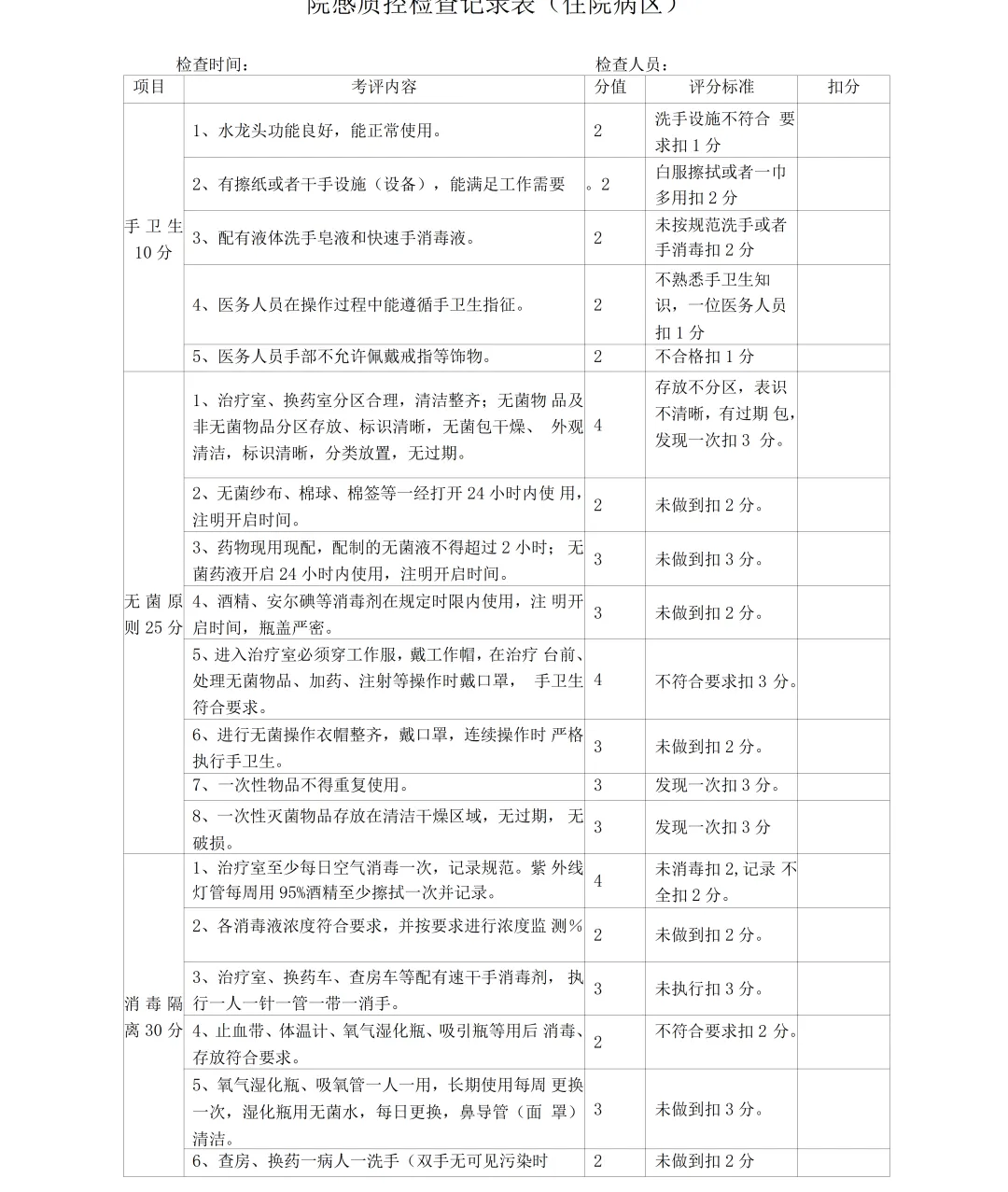 2026院感质控检查记录表合集大全