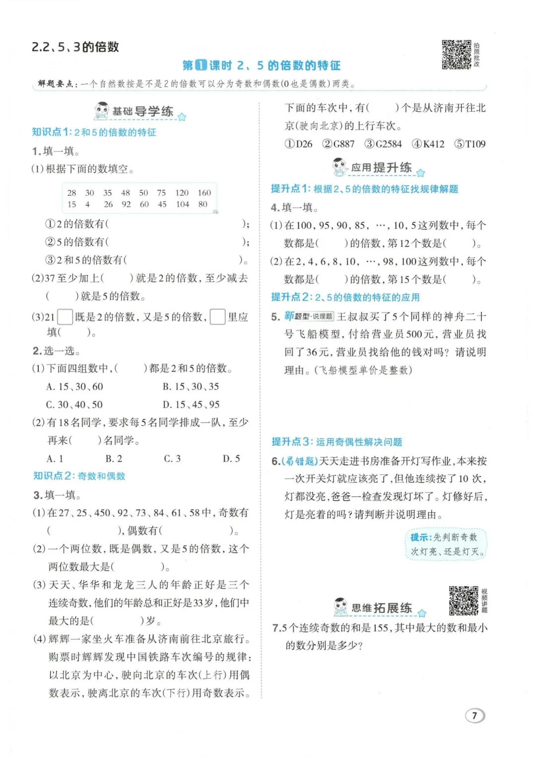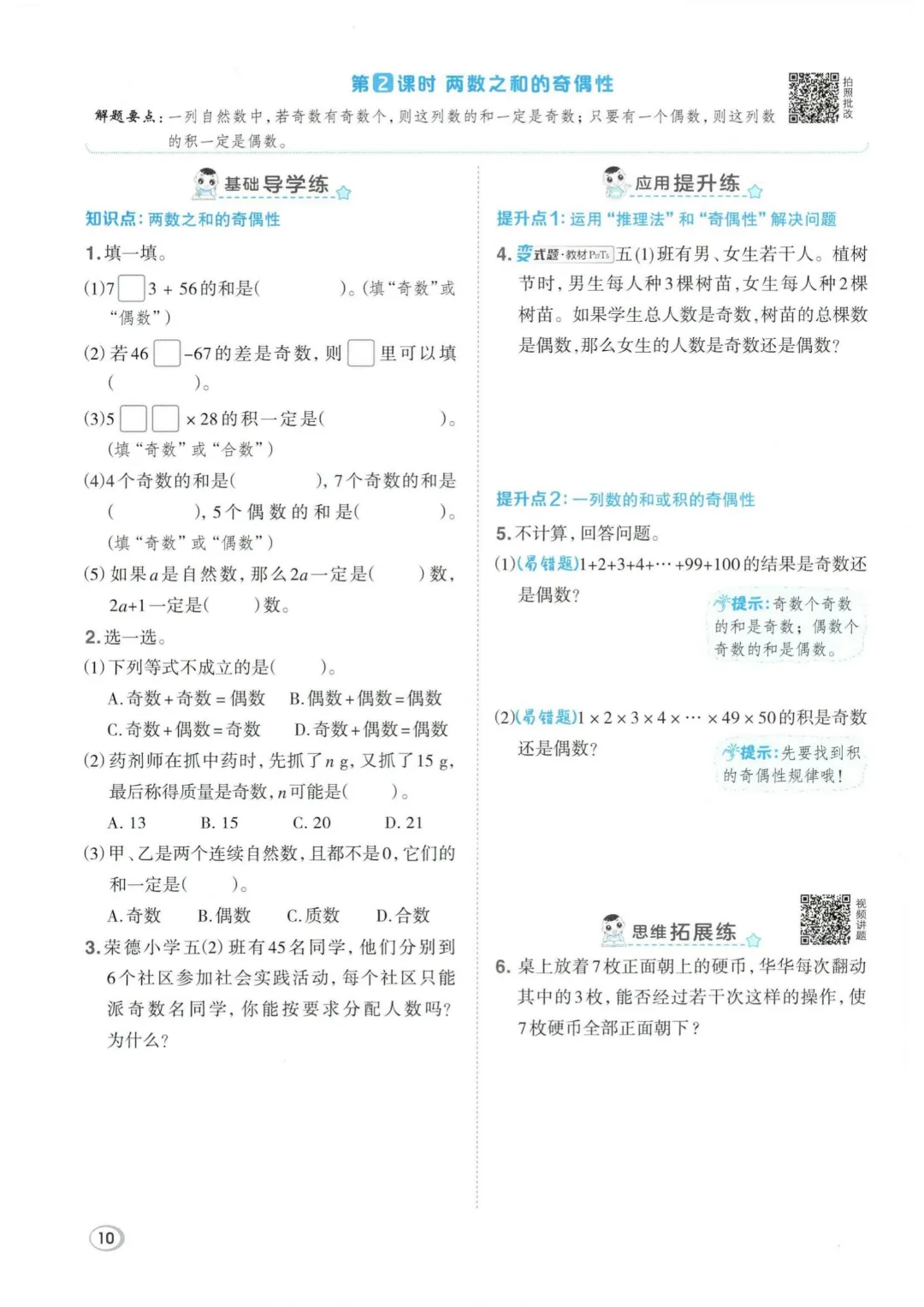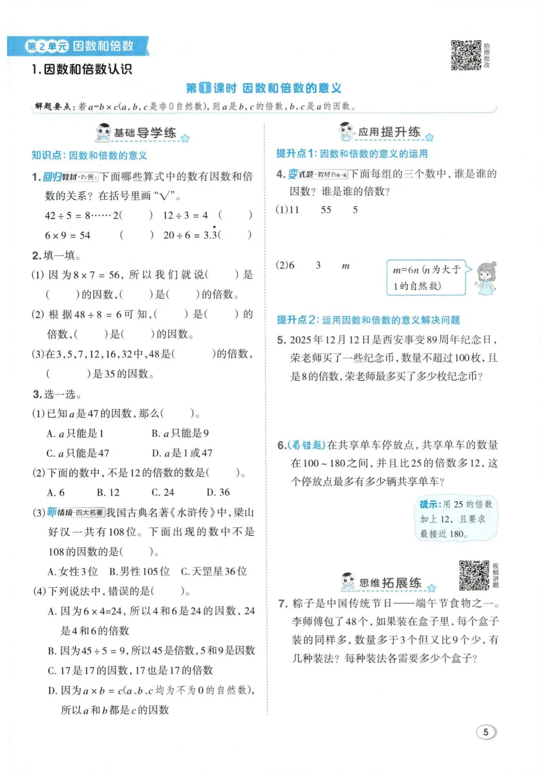 26年春五年级下册数学全册一课一练,电子版可打印