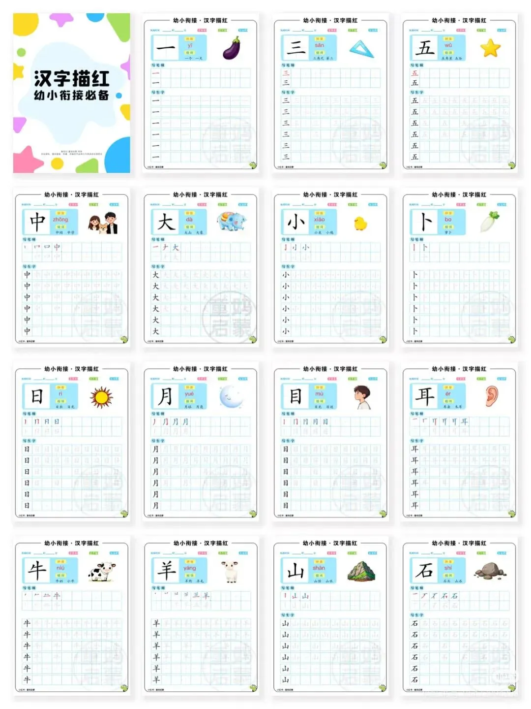 孩子刚学写字,握笔姿势不对,写出的字歪歪扭扭,家长干着急?这份由资深幼教老师内部整理的汉字描红本,正是解决幼小衔接书写痛点的“神助攻”!