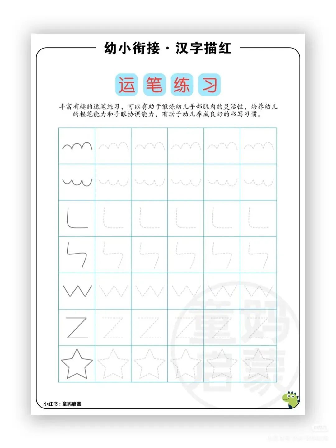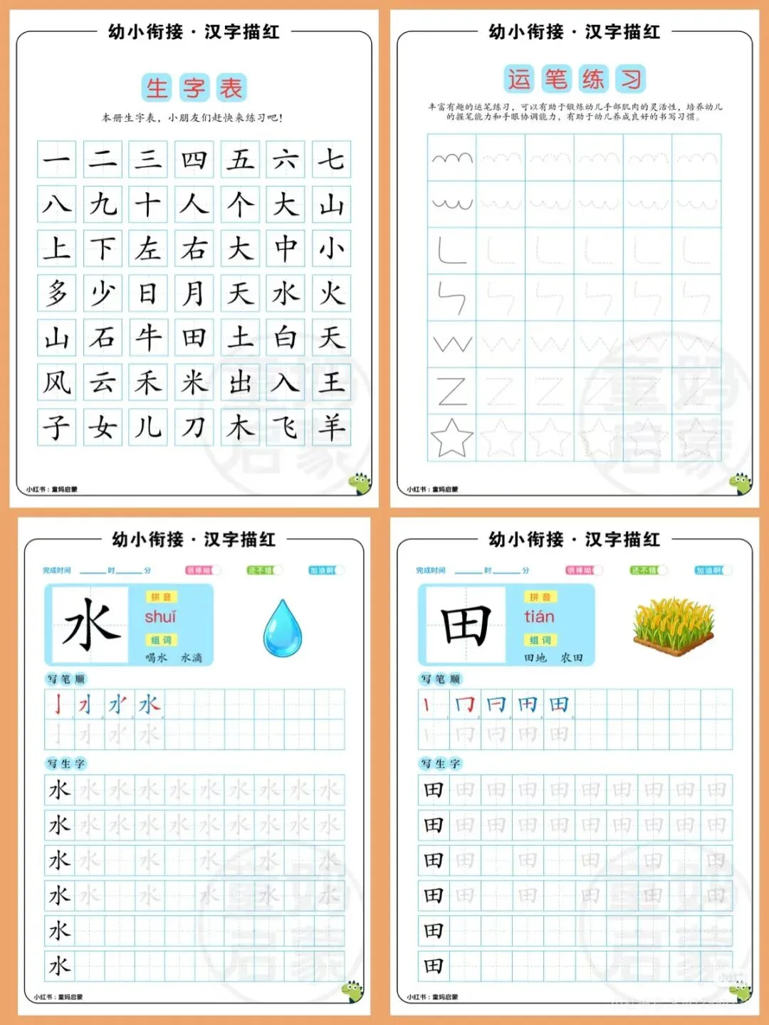 非常适合幼儿园大班、幼小衔接阶段的孩子,用于汉字启蒙和书写规范练习。