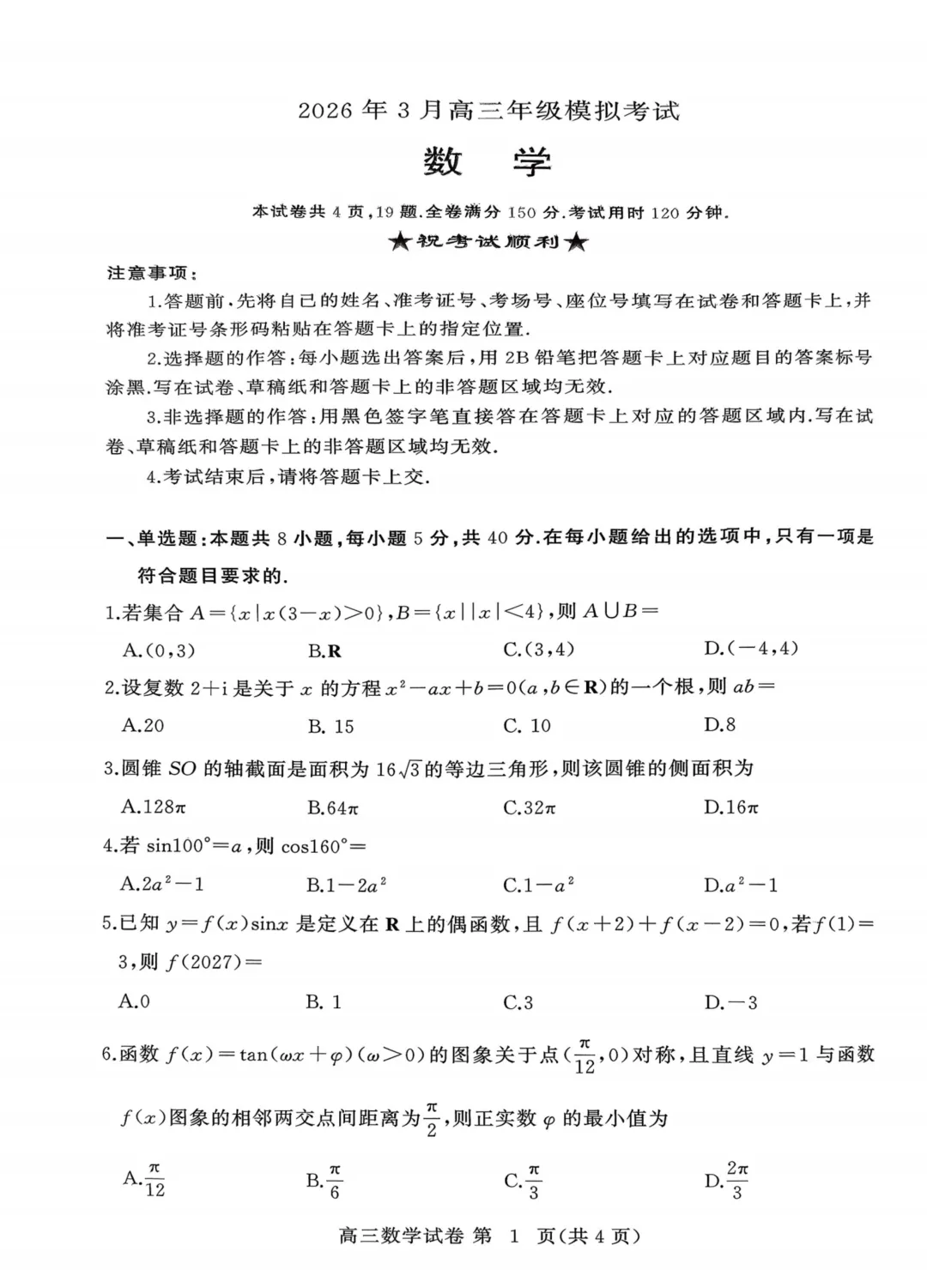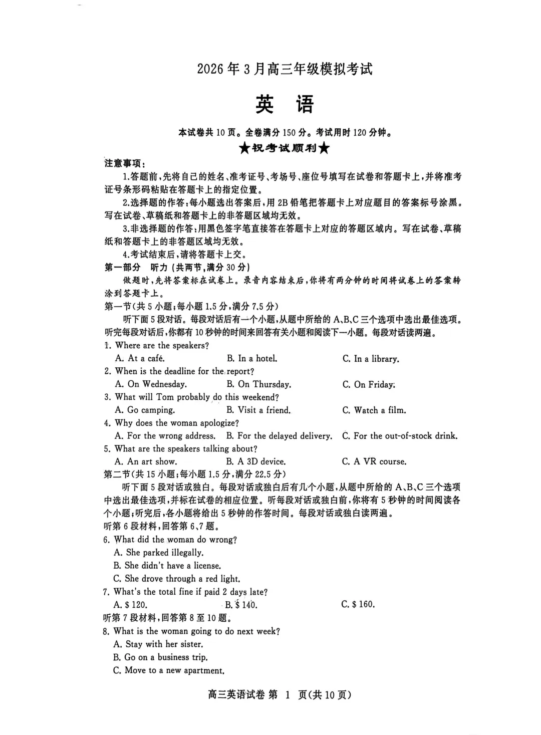 一、试卷核心概况:为什么它是高考前的“关键演练”?