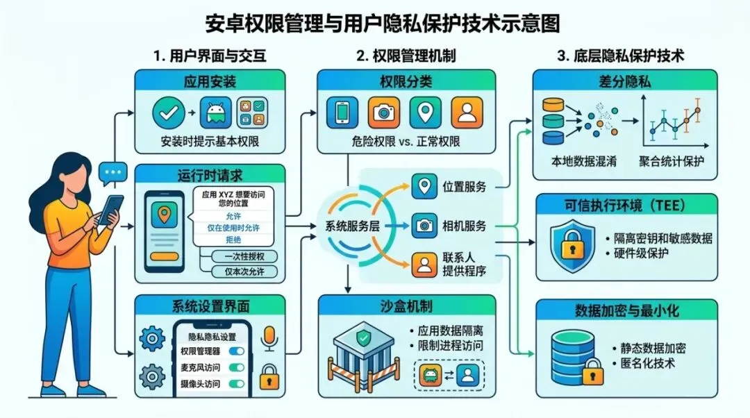 ▲ 安卓权限管理与用户隐私保护技术示意图