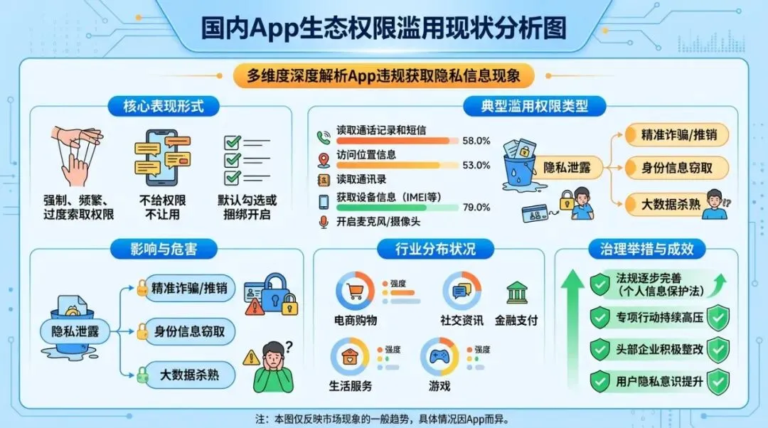 ▲ 国内App生态权限滥用现状分析图