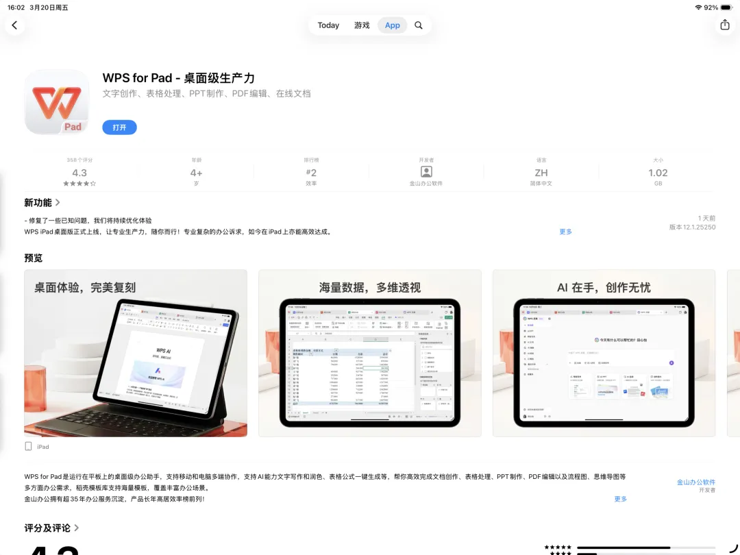 这一表现,初步证明了在iPadOS生态中,专业化、桌面级的办公需求是一个长期存在且未被满足的巨大市场空白,而WPS for Pad的出现,恰好填补了这一空白。