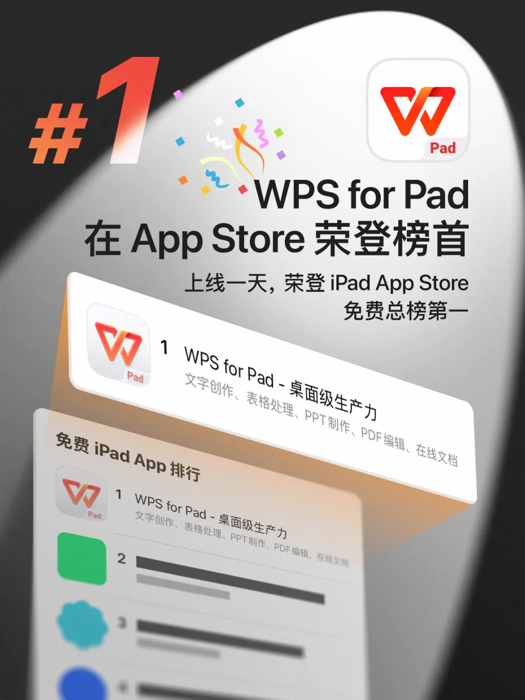 产品的市场反响验证了其价值。WPS for Pad上线后,迅速超越DeepSeek等热门AI应用,持续霸榜中国内地及中国香港等地区苹果应用商店免费下载总榜和工具榜。