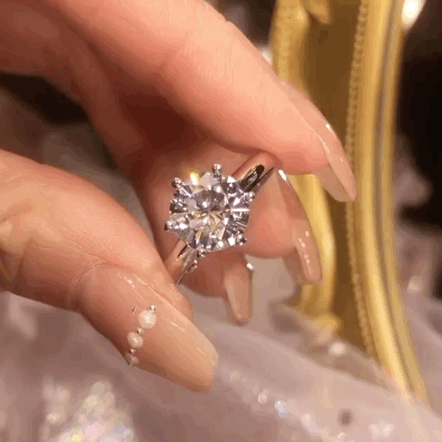 这个莫桑钻戒,虽然小小一颗但看着闪到不行,毕竟莫桑双向折光,戴在手上你就是人群中最闪耀的星好吧~
