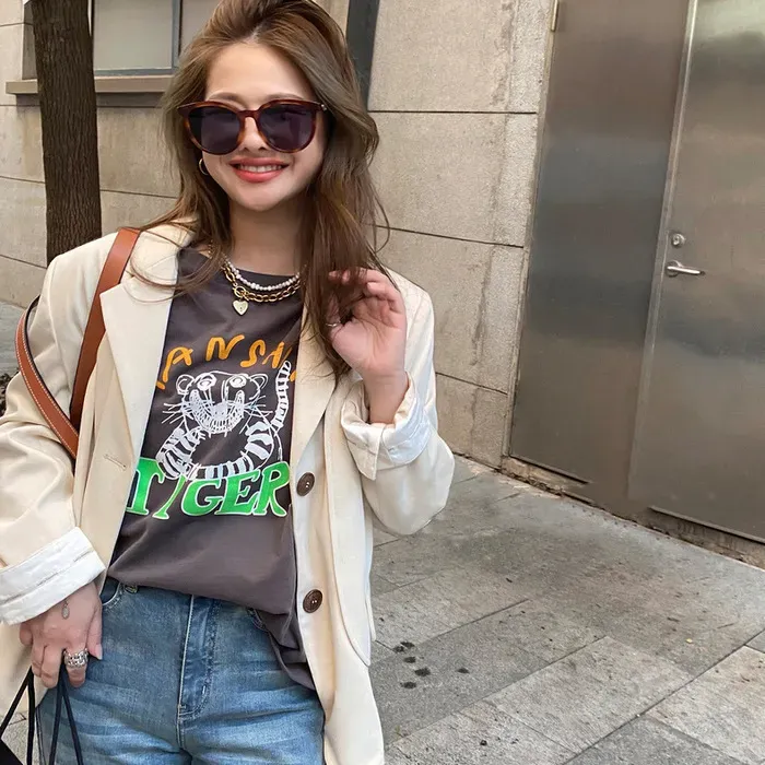 走甜酷路线的姐妹们,那就一定不能错过这款!纯色色系+可爱的卡通图案,简约又大气,一上身就自带鲜明的风格感。