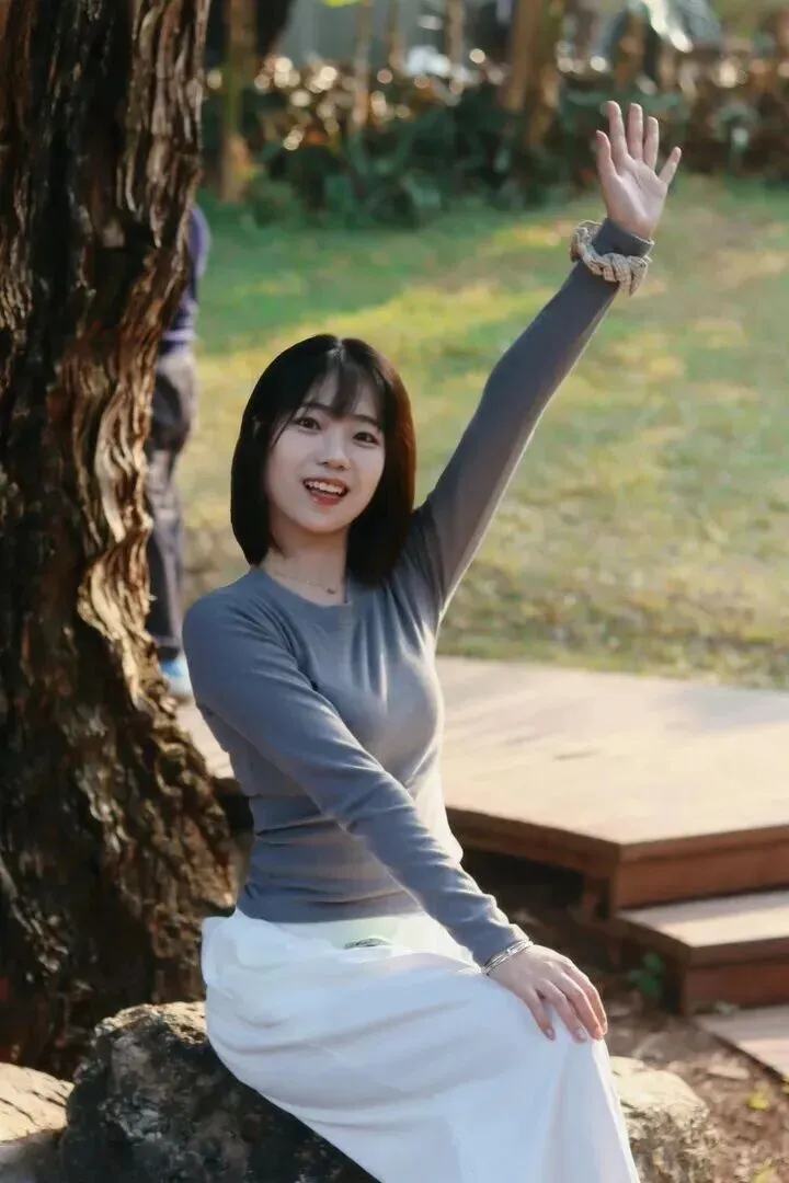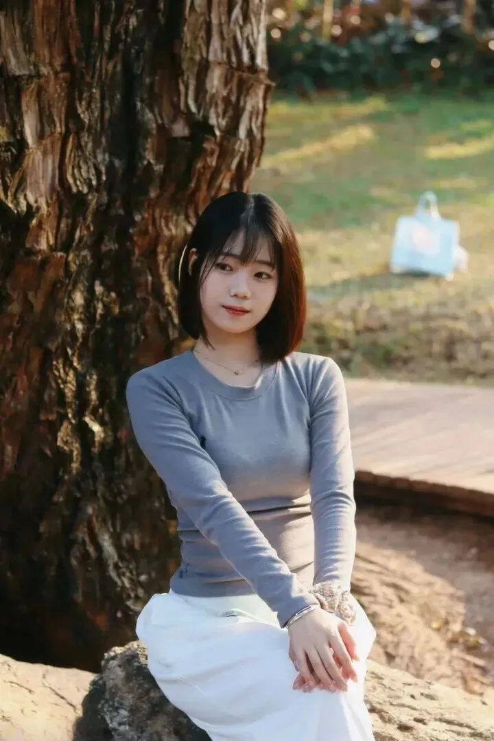女学生在一棵大树下站着,穿着针织衫上的图案小刺绣女学生很美丽很可爱。颈上的细金链子光闪闪的,使肤色也变得透亮起来。银手镯与细手链叠加的时候抬手之间就会有小心机。