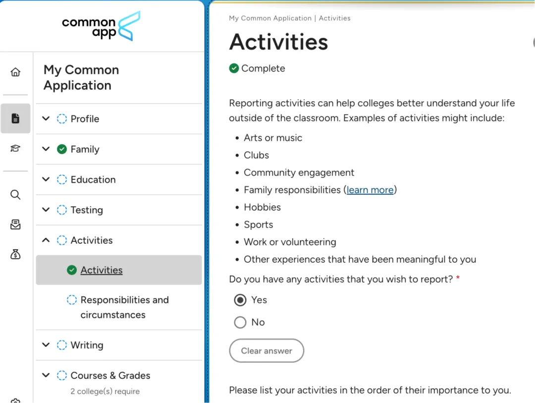 在Common App的Activities部分,最多可以填写10项活动,没有下限(也就是可以不填)。那么课外的活动那么多?应该选哪些填上去,又如何排列这些活动呢?