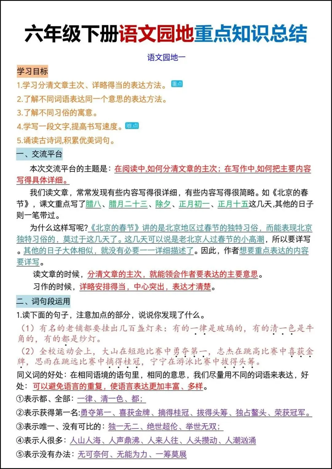 😉 今天分享六年级下册语文《语文园地重点知识总结》,含答案共23页,可提供电子版方便下载打印。通过详细的学习目标和内容介绍,帮助学生和家长了解语文学习的重点和难点,提升语文素养和表达能力。家长们可以打印出来让孩子练一练,助力语文成绩的提升
