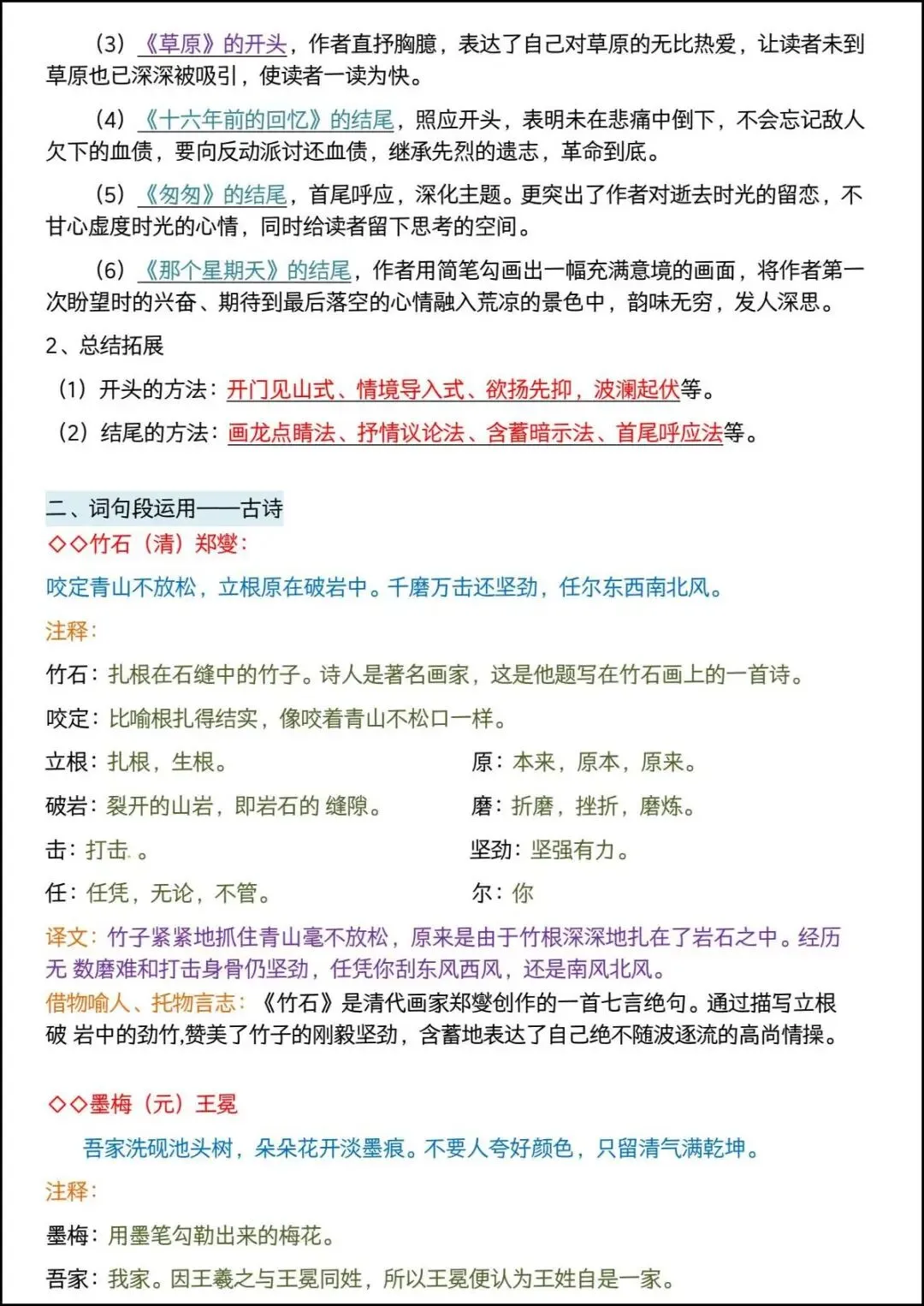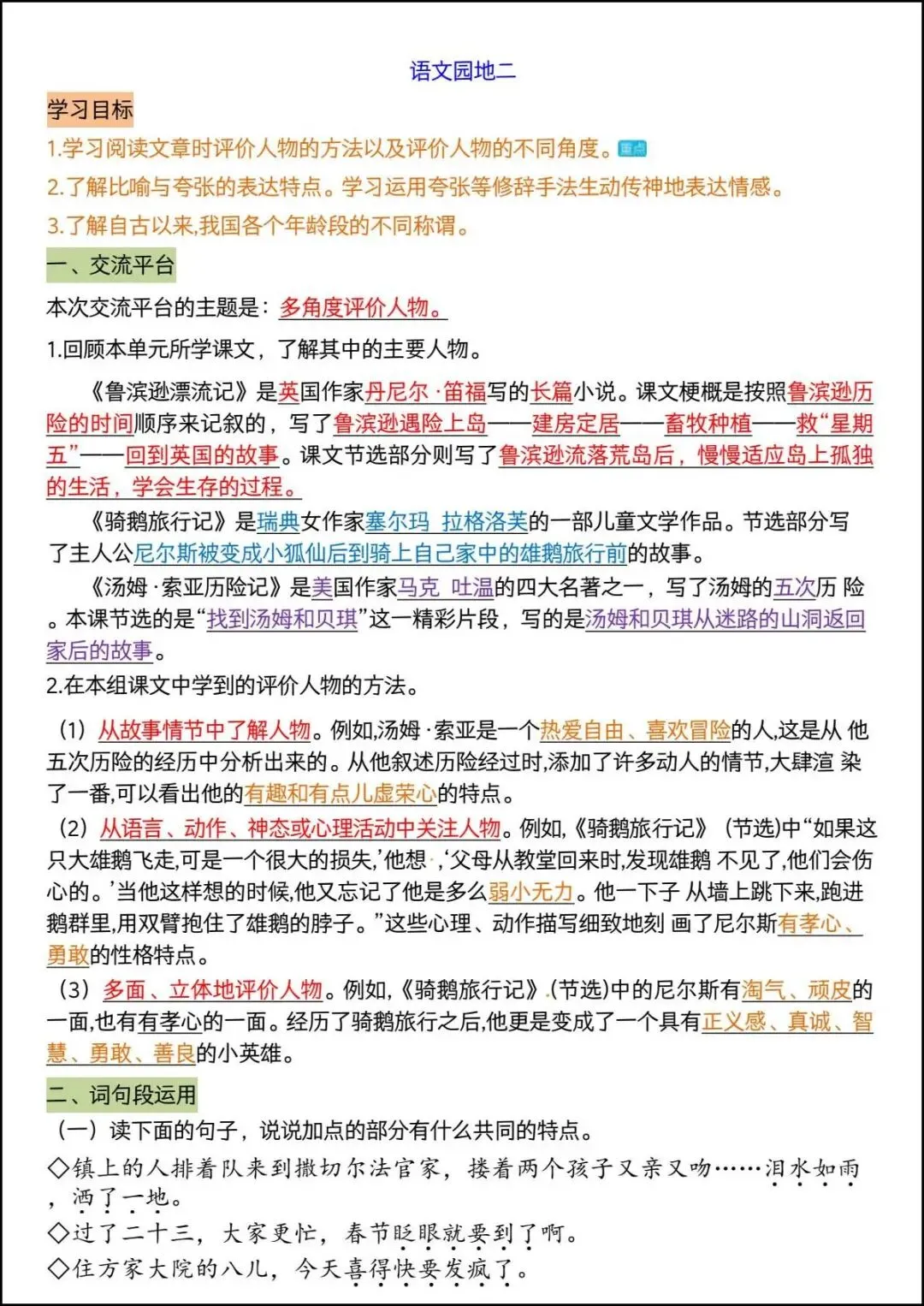 六年级下册语文《语文园地重点知识总结》,电子版可打印