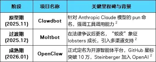 OpenClaw 的发展历程本身就是 AI 智能体行业快速迭代的缩影。该项目最初由 PSPDFKit 创始人 Peter Steinberger 开发,初衷是作为一个简单的“WhatsApp 转发器”,但很快演变为一个全功能的自主智能体框架 1。