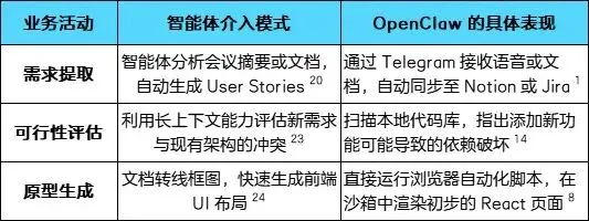这种模式下,业务分析师(BA)的角色从文档撰写者转变为“信息架构师”,而 OpenClaw 则承担了将高层意图翻译为技术约束的重任 20。